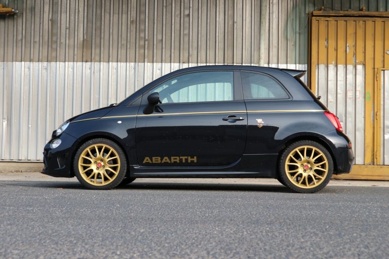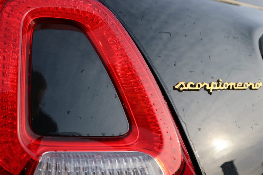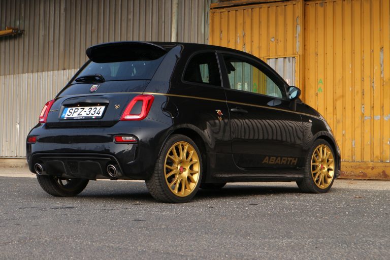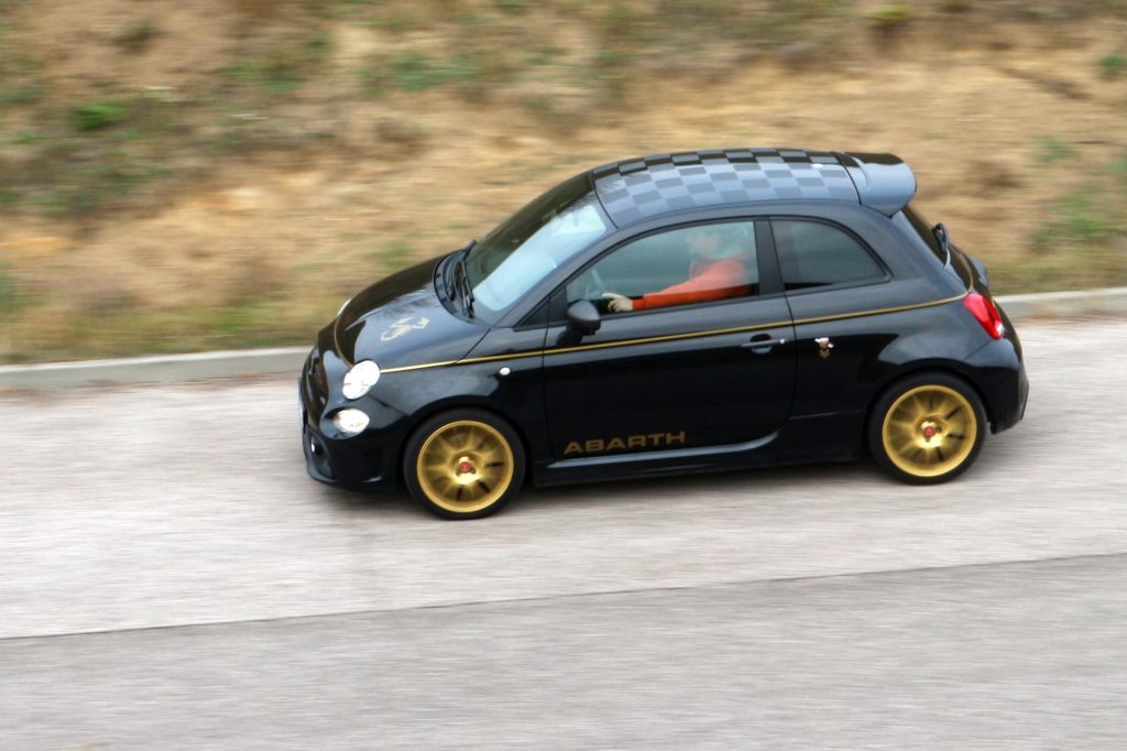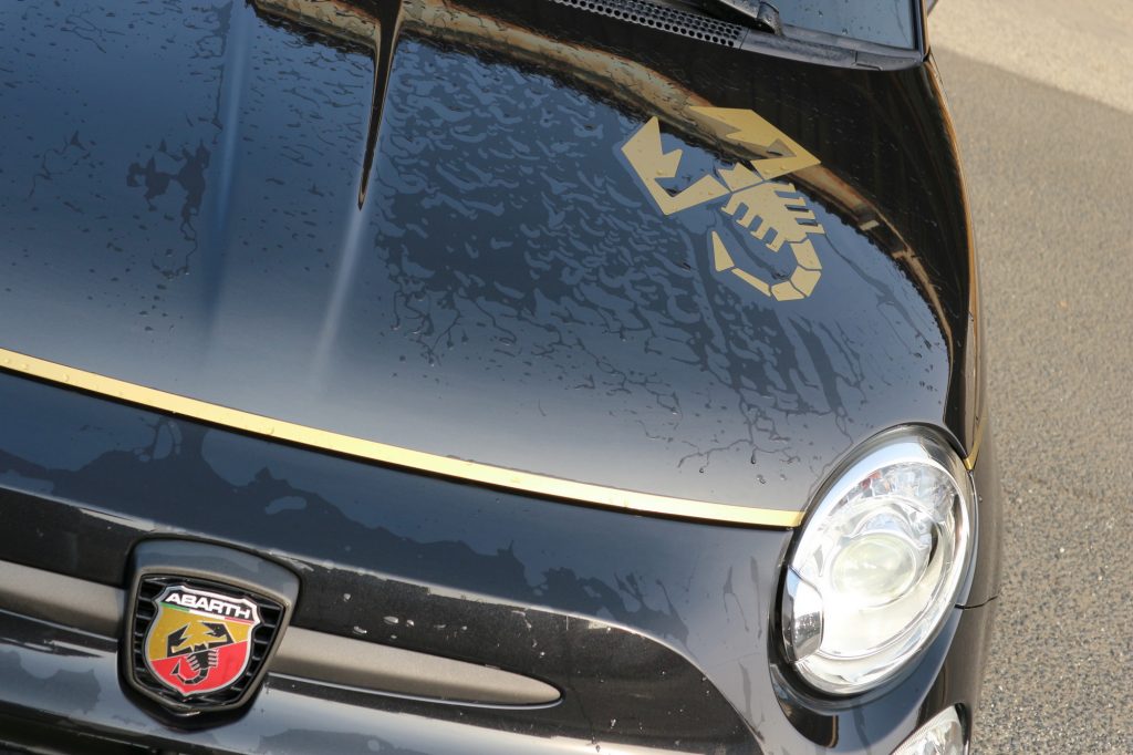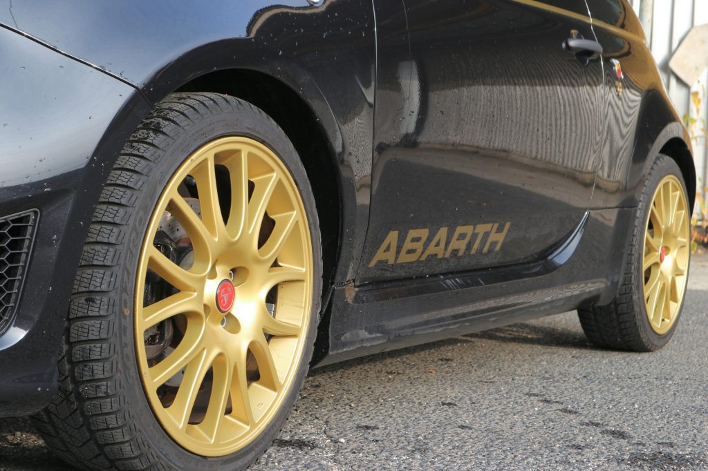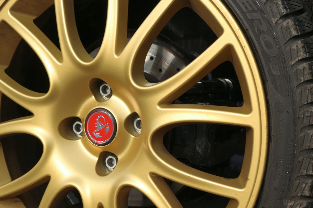 A kis fekete izomgolyó hivatalos neve Abarth 595 ScorpioneOro, ami azt jelenti, hogy az 500-as Fiatból erőteljes kozmetikai és gépészeti beavatkozással elkészült 595-öst ebben a 2000 darabos limitált szériában arany felnikkel, arany csíkkal és skorpiós arany tetoválásokkal egészítették ki. A Fiat 1,4 literes négyhengeres turbómotorja (T-Jet) ebben a modellben 165 lóerős (az alap-595-ben 145, a legerősebben 180), ami 7,3 másodperces 0-100-ra és 218 km/h-s végsebességre elég.