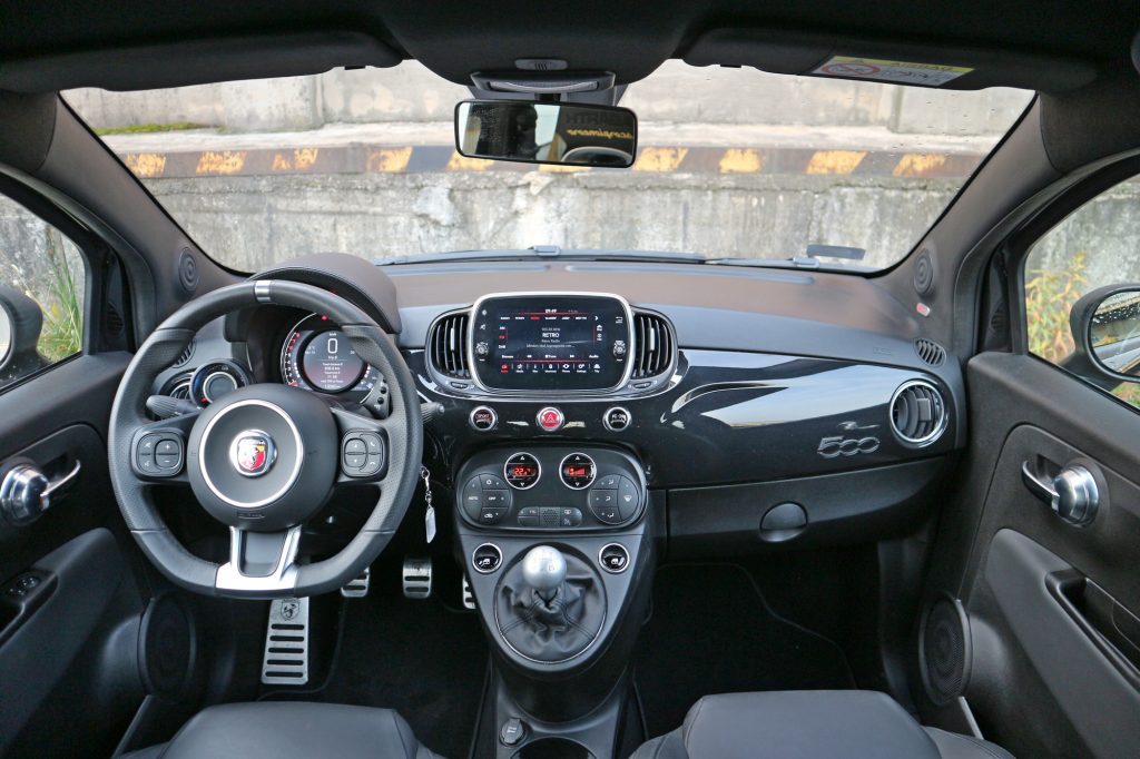 Az Abarth 595, ahogy a Fiat 500 is, alapvetően városi autó. Nem annyira 4 mint inkább 2+2 személyes, hátul felnőtteknek már erősen korlátozott a tér, kényelmetlen itt a görnyedés. A csomagtartó ellenben meglepően tágas, a támlák gyors döntésével könnyen bővíthető. A nagy teljesítmény és a magas végsebesség-adat megtévesztő: hosszú útra ez a kocsi nem való. Szórakoztató ugyan, ahogy ötödikben 130-nál 3200 körüli fordulatszámról (ami már a nyomatékcsúcshoz tartozó érték) mennyire erőlködés nélkül, lelkesen ugrik meg és tart lépést szinte bárkivel, ha hirtelen áttévednénk a német Autobahnra, de a kis tengelytáv, kis kerék nagy tempónál bizonytalan stabilitást és korlátozott komfortot jelent. Sztrádán az amúgy jó hangzású Beats hifit sem lehet élvezni a hangos kipufogóktól.