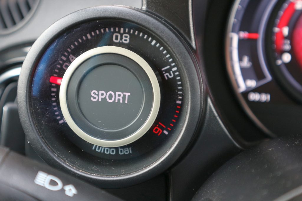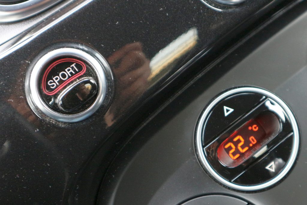 Van egy Sport gomb is a műszerfalon. Ez igazából három dolgot csinál: vörösre váltja a virtuális műszeregység képét és megjeleníti a vízhőfokot is a fordulatszám mellett; felkeményíti a kormányzást és sokkal érzékenyebbre állítja a gázpedált.