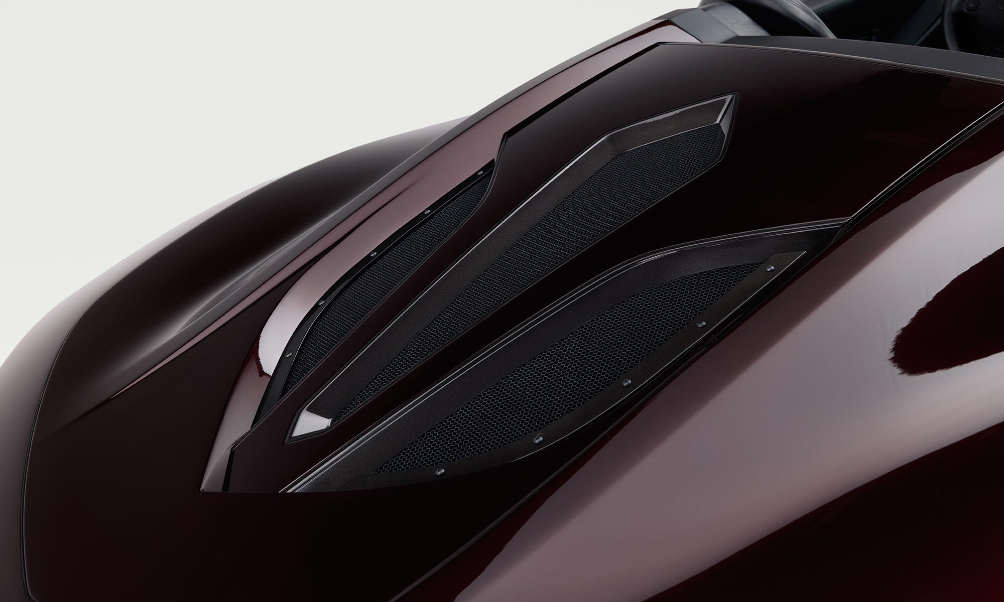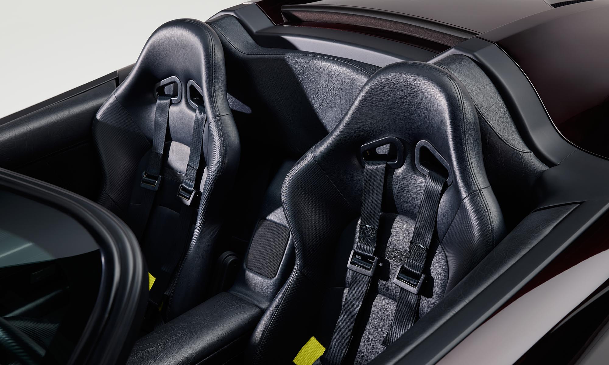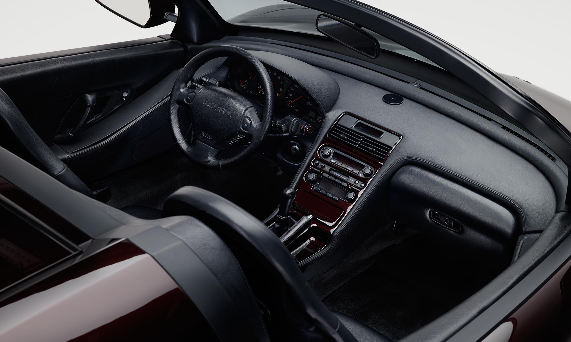Nagyrészt változatlan maradt az első NSX műszerfala, csak egy színrefújt betét került rá, és a 3 literes, 270 lóerős V6-os motor is eredeti, ez tehát még nem a hibrid NSX, nem is elektromos. A legérdekesebb a fényezése, egy olyan sötétpiros, amit