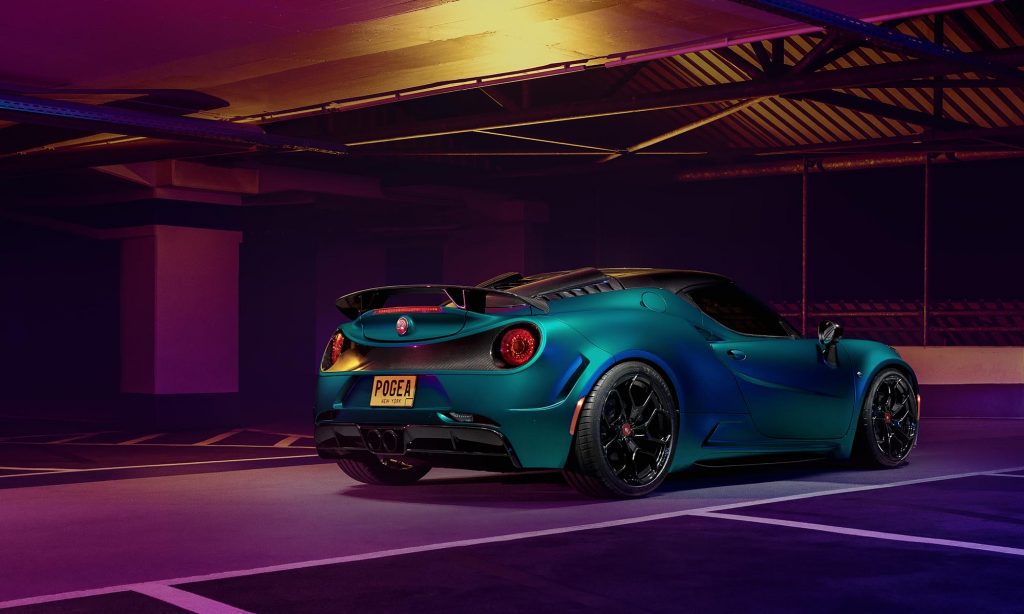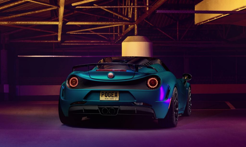 A szénszálas anyagból készült, középmotoros apró sportkocsi az Alfa Romeo nagy dobása volt, de a 4C-t sok kritika érte azért, mert nem elég erős. Az ülések mögé épített 1,75 literes, turbós négyhengerese gyárilag 240 lóerős, és ezen segített a Pogea Racing, aminek a műhelyében 351 lóerősre izmosították, a legnagyobb nyomatéka 458 Nm-re nőtt.