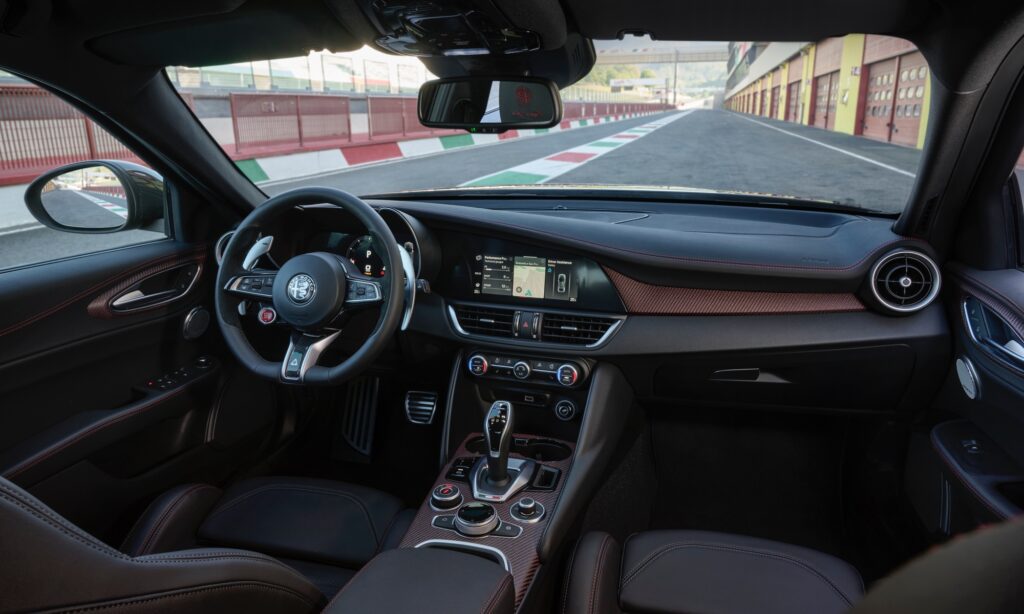 Fekete fényezéséhez sötét tónusú felniket párosítottak, mögöttük fekete a féknyereg és most először a sárvédőn díszelgő négylevelű lóhere is fekete hátteret kapott. A Giulia Quadrifoglio Super Sport utasterének feketeségét a fejtámlák piros varrása és a szintén pirossal szőtt karbonbetétek oldják. Akinek a négyajtós utastere nem lenne elég praktikus, az rámehet a 175 darab Stelvio Quadrifoglio Super Sport egyikére.