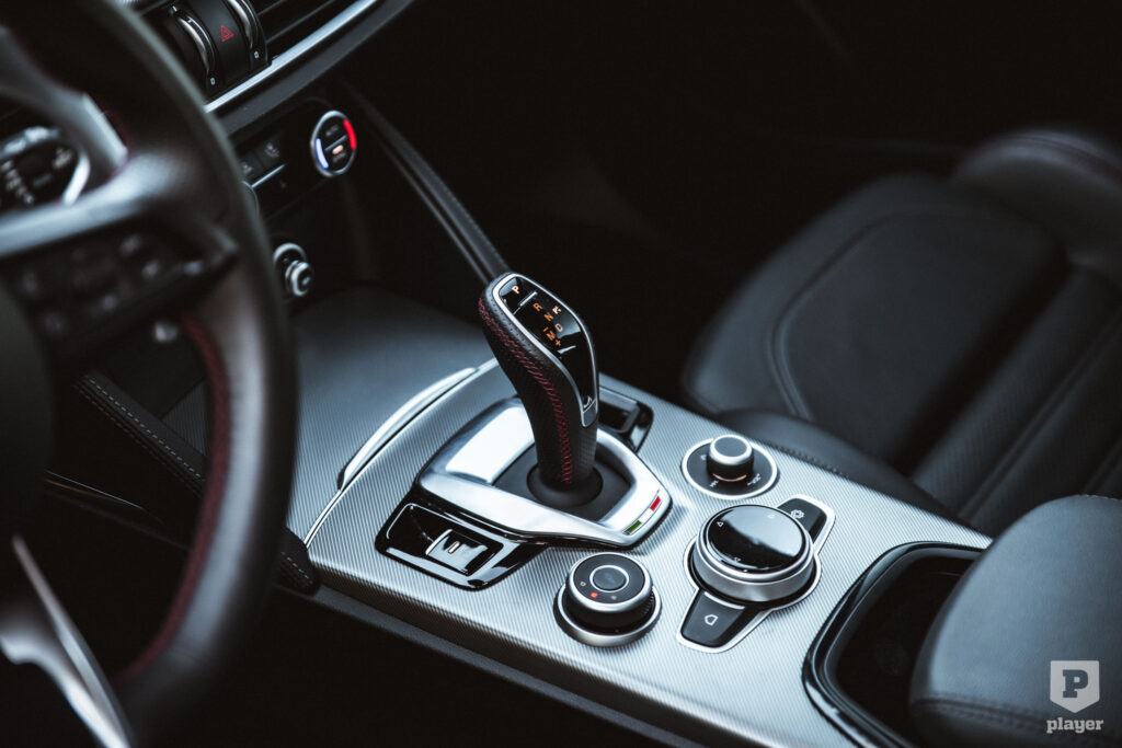 Jól illene a kardánalagútra egy kézi váltó karja, de a Competizione csak nyolcfokozatú automatával és összkerékmeghajtással kapható, szerencsére az előválasztó kart is olyan lelkiismeretesen bőrözték, hogy öröm ránézni, tettek is elég egy kis olasz trikolórt, hogy értsük, honnan ez az a finom stílus.