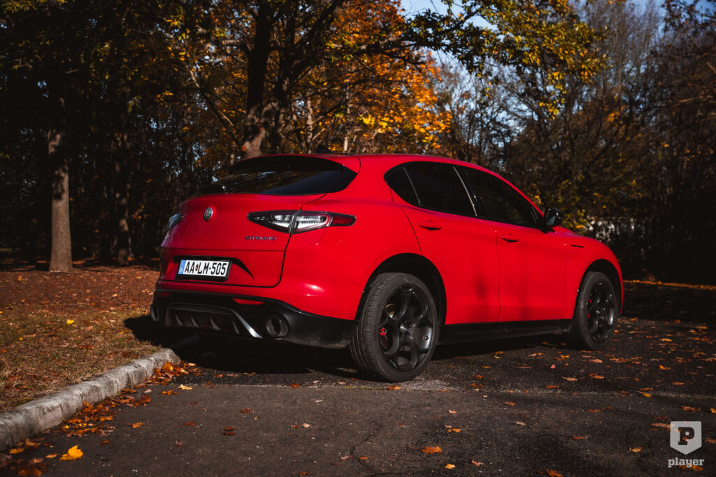 A Q4 összkerékmeghajtás is partner az élvezetes vezetésben: alapvetően a hátsó kerekekre küldi az akár 400 Nm nyomatékot, csak tapadásvesztéskor jut belőle az első tengelyre, így megvan a hátsókerekes élmény – ráadásul a hátsó differenciálmű részlegesen önzáró –, és a négykerekes stabilitás is. A Stelvio ilyenkor egy szép családi SUV-ból méretét és tömegét meghazudtolóan dinamikus, közvetlen, örömautózásra termett járművé változik, és ez igazán szerethető transzformáció.