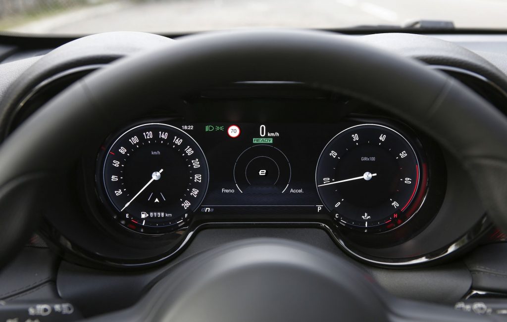 Az erő elég volt a haladós autózáshoz, a menetdinamikában viszont egyáltalán nem voltak izgalmak, a motor hangja pedig tökéletesen semmilyennek bizonyult. A gázreakció ugyanolyan vontatott, mint bármelyik mai Euro-6-os, agyonfojtott, agyonvezérelt turbómotornál és persze gázelvételnél a fordulatszám visszaesése is ugyanolyan borzasztó lassan megy. Majd a konnektoros hibrid jobb lesz, ha lesz. Abban az erősebb villanymotor spontaneitása áthidalhatja majd ezeket a dolgokat, de az első motorváltozat, ez a mindössze 15 kilowattos, 48 voltos villanymotorral megtámogatott, inkább mild-hibrid mint fullhibrid rendszer alapvetően mégiscsak úgy viselkedik, mint egy sima benzinmotor, DSG-, pontosabban, ahogy az Alfánál hívják, TCT-váltóval.
