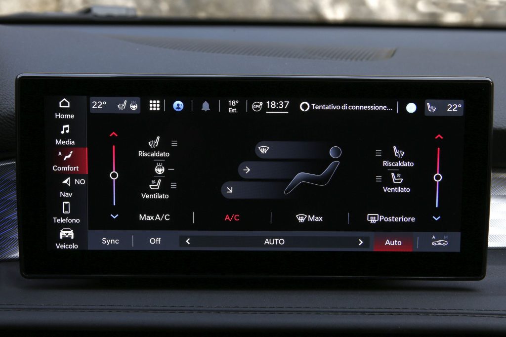 A technikát mindenesetre nincs semmi okom bántani. Jó, egyszer-kétszer lefagyott a központi kijelző, néha kísértetet látott és bevágott egy-két indokolatlan satuféket lassú manőverezés közben az ütközés-elkerülő automatika, de ezt megcsinálja bármelyik mai „korszerű” autó is, ehhez nem kell olasznak, pláne előszériás olasz autónak lenni.