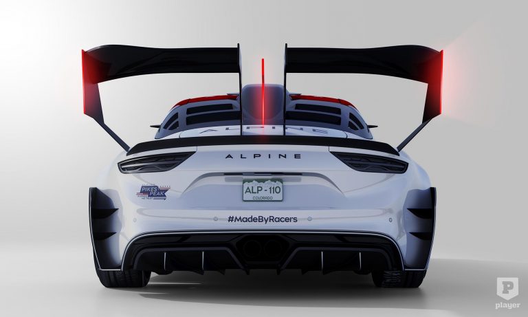 Jelenlegi egyetlen modelljéből, a középmotoros A110-ből indult ki az Alpine, és a Pikes Peak meghódítására tervezett pályagép szinte csak nagy vonalakban emlékeztet az eredetire. Az aerodinamikája elég extrém lett a két részre osztott, hatalmas hátsó szárnyával, a jókora splitterrel és diffúzorral, még a felnik is áramvonalasak.