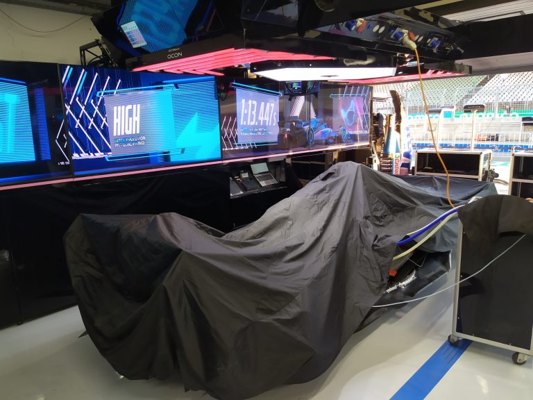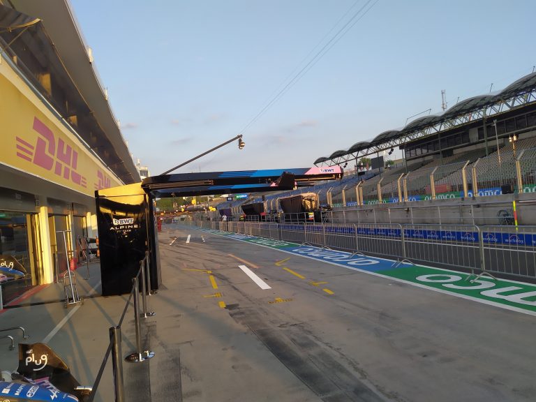 Végül bekukkanthattunk a csapat bokszába is, ami naplementekor a helyszín funkciójához képest irreális nyugalmat árasztott. Még a szezont jórészt a csapattal végigutazó személyzet tagjai is nyugiban, széles mosollyal tettek-vettek a naplementében. Futam előtti csend honolt a garázsban, meg a Hungaroringen.