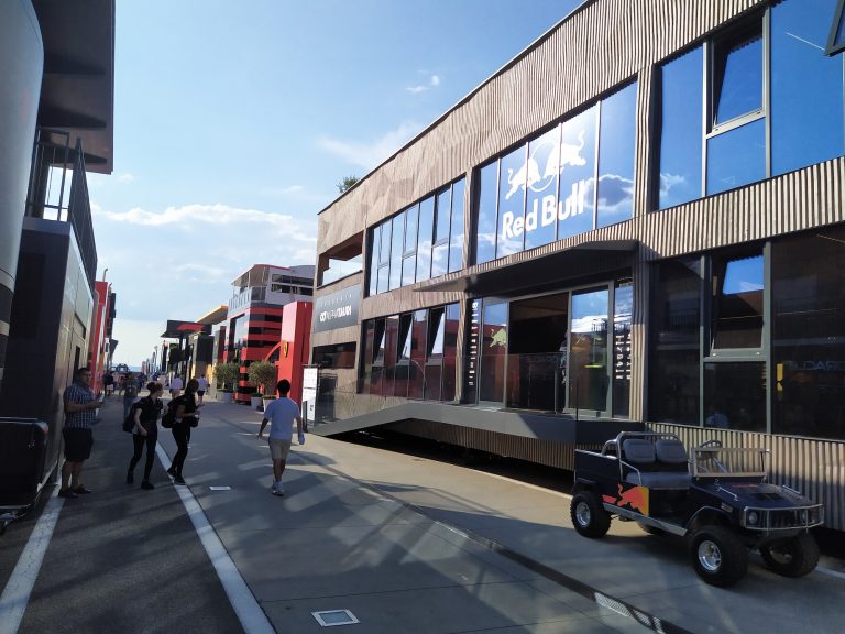 A motorhome meglepően nyugis volt csütörtökön: már mindent összeraktak a Franciaországból éppen ideérkezett csapatok, de még nyoma sem volt a verseny izgalmának. Egy-két pilóta sétálgatott lassú tempóban, szerelők, mérnökök, mindenféle csapattagok bukkantak fel, a visszavonulását éppen bejelentő Sebastian Vettel egy német kollégának nyilatkozott. És persze megnézhettük, melyik csapat milyen mobilépítménnyel reprezentálja magát.