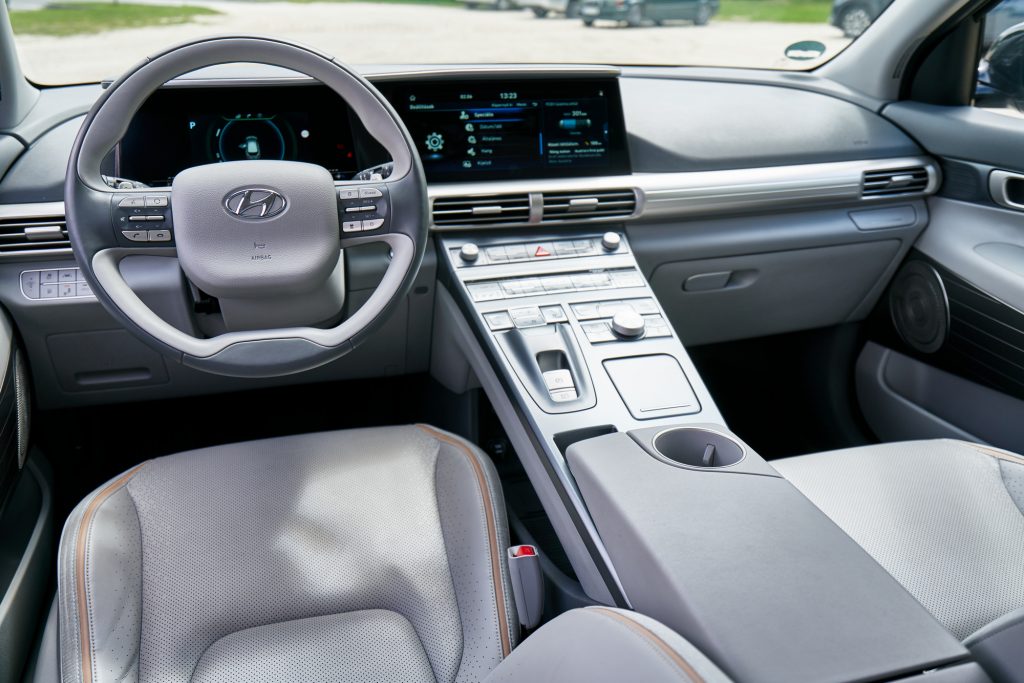 A Nexo az első magyarországi próbaúton (amelyet az új Bayon és az i20 N sportautócska bemutatója mellé szervezett a Hyundai) szintén kiforrott, kész kocsinak bizonyult. Pláne, hogy a tesztautóban már volt 80 ezer kilométer, mégis tökéletesen egyben volt, minden porcikájában újszerűnek tűnt. A Nexo karaktere mindenben teljesen más, mint a Mirai-é. A 163 lóerős villanymotor az első kerekeket hajtja, a kocsi futóműve és belső kialakítása pedig a fő piac kedvelt stílusához, a kényelmes, terpeszkedős amerikai utazáshoz igazodik. A feszes, agilis Mirait vezetni jó, a tágas, kényelmes, puha rugós Nexóban utazni jó.