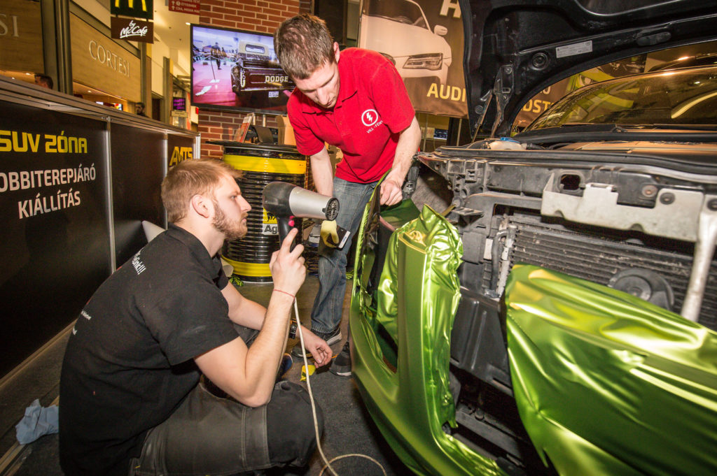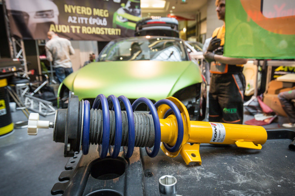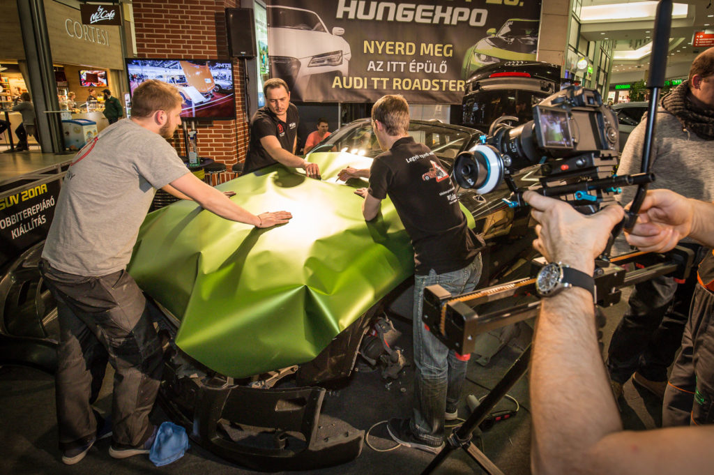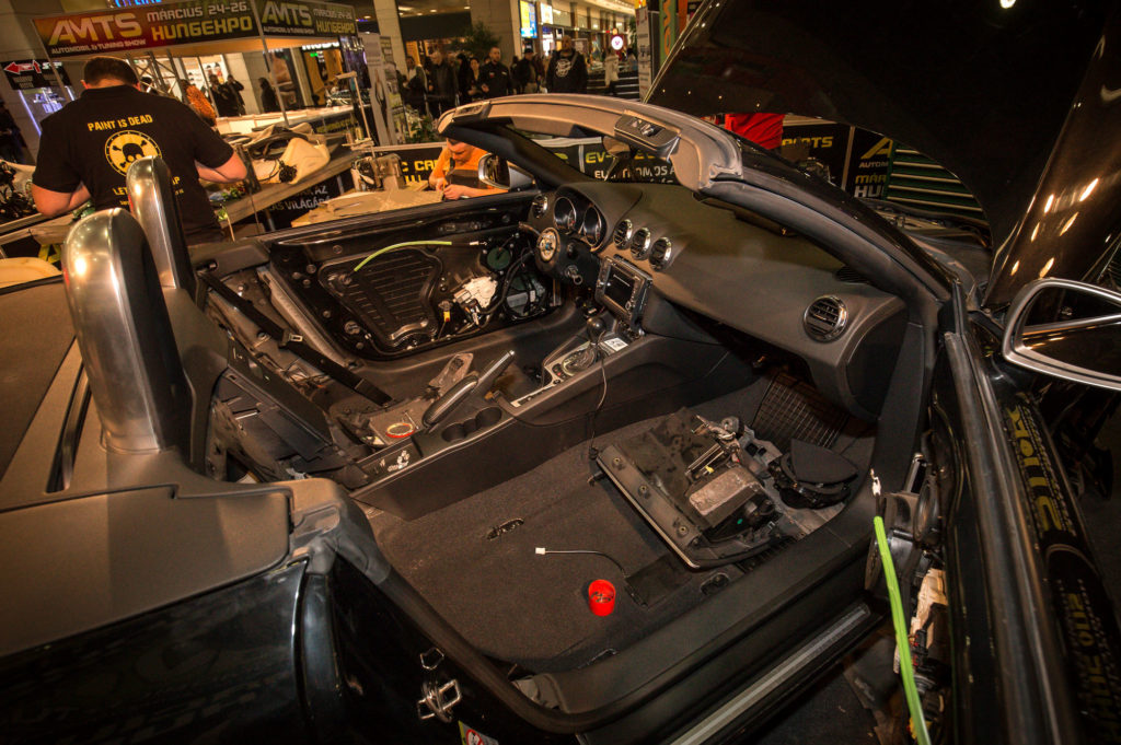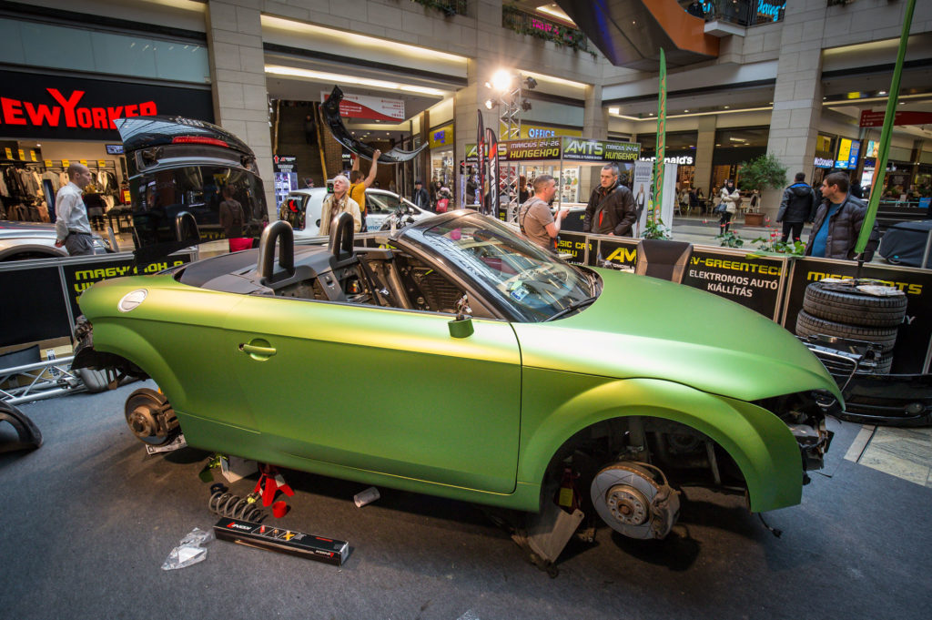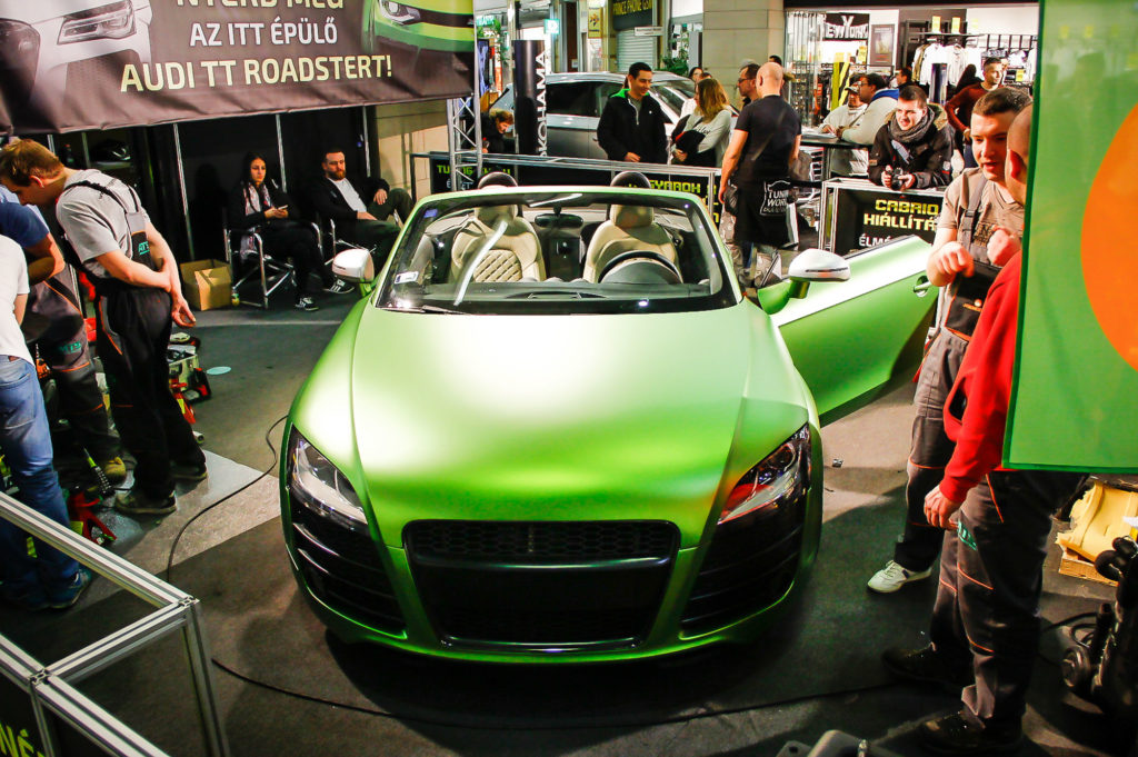 Idén az AMTS már a tizenkettedik évfolyamába lép, és nem hagynak fel azzal a jó szokásukkal sem, hogy a belépővel egy autót lehet nyerni. De ne a legolcsóbb kiskocsi fapados változatára gondolj, hanem egy igazi tuningautót építettek neked, méghozzá élőben. Korábban BMW Z4 és VW Scirocco is volt nyereményautó, de az első új Ford Mustangot is ők építették át. Idén a Westendben lehetett megnézni, hogyan készül egy átlagos Audi TT-ből egy menő matt zöld változat.