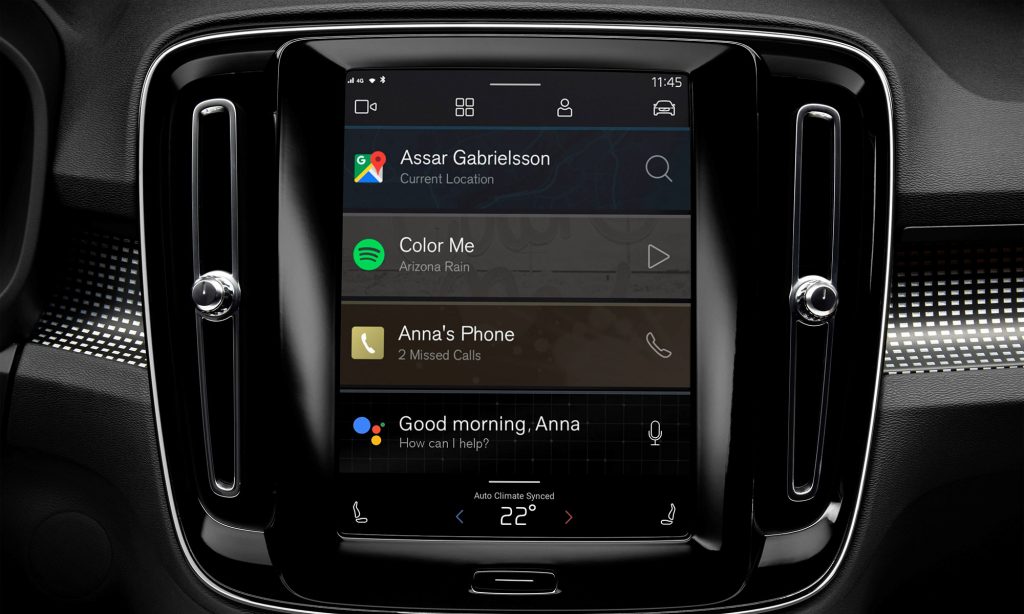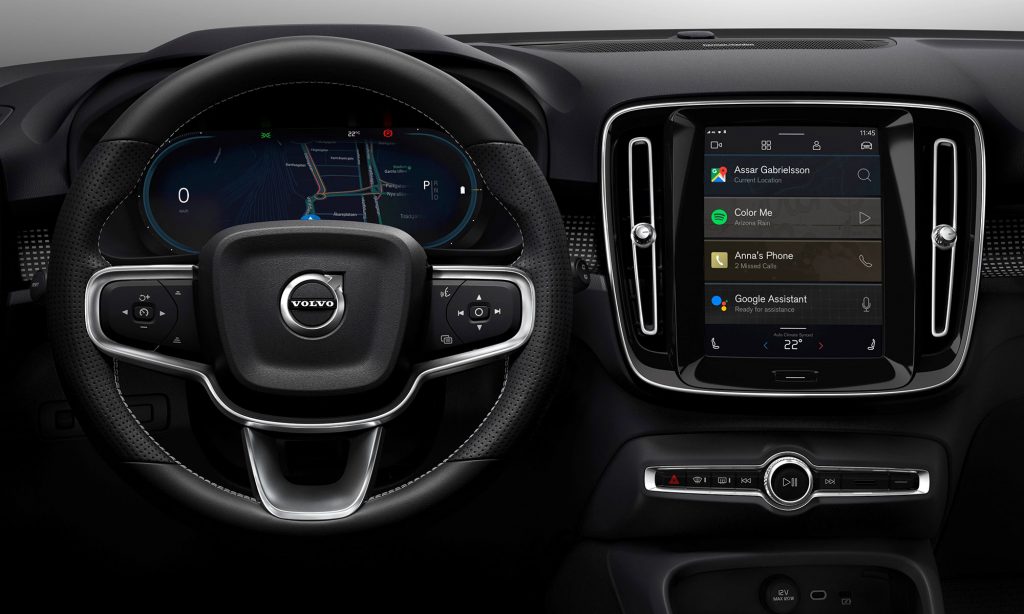 Az elektromos XC40 lesz az első Volvo, ami egy újonnan fejlesztett androidos fedélzeti rendszert kap. Az autóban ezért a Google alkalmazásait használhatod, a navigációt a Google Maps, a zenét pedig a Spotify adja, és a hangvezérléses asszisztens is elérhető lesz, aki az autó paramétereit, például a hőmérsékletet is állítani tudja.