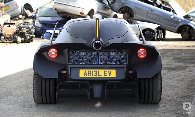 Az elektromotorokat egy egészen nagy kapacitású, 62 kilowattórás akkumulátor táplálja, amivel 240 kilométeres hatótávot ígérnek, és ha ez kevésnek bizonyulna, a Cosworth által fejlesztett hatótávnövelő erőforrás is van a fedélzeten: nem egy hagyományos benzinmotorról, hanem egy 35 kilowattos turbinamotorról van szó.