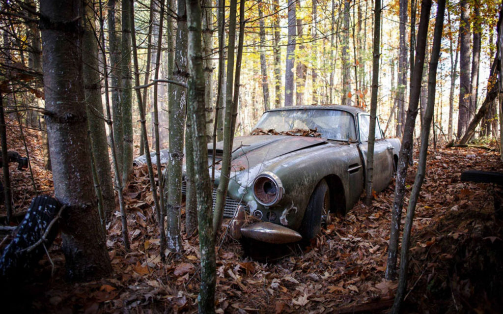 1960-ban készült ez az Aston Martin DB4, és ekkor került első tulajdonosához az Egyesült Államokba. Nem tudni, hogy ő, vagy egy későbbi tulajdonosa parkolta le egy massachusettsi birtok végén lévő erdőbe a fák alá, de az biztos, hogy a brit sportkocsi az utóbbi ötven évet ott töltötte.