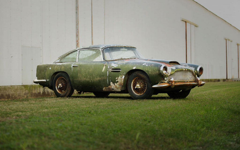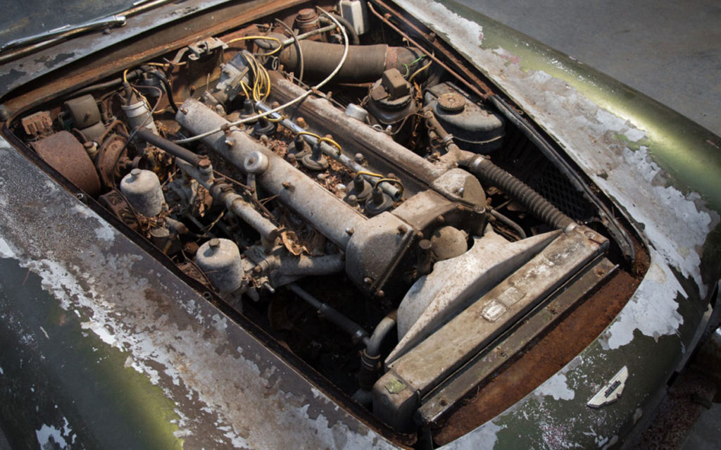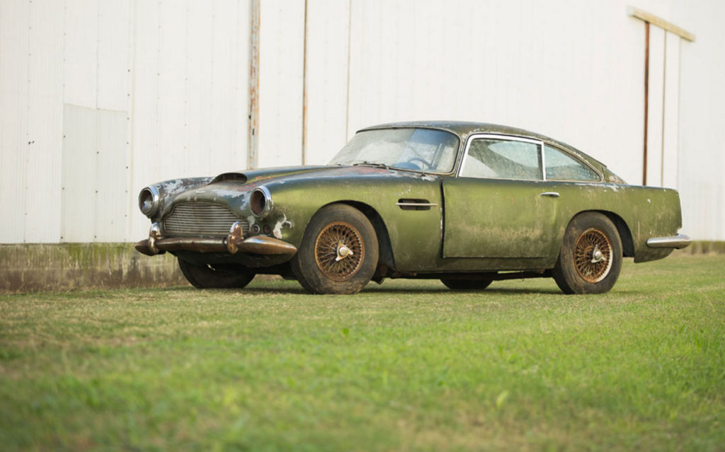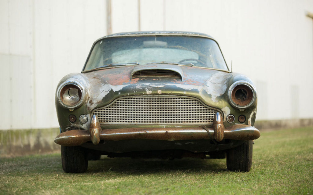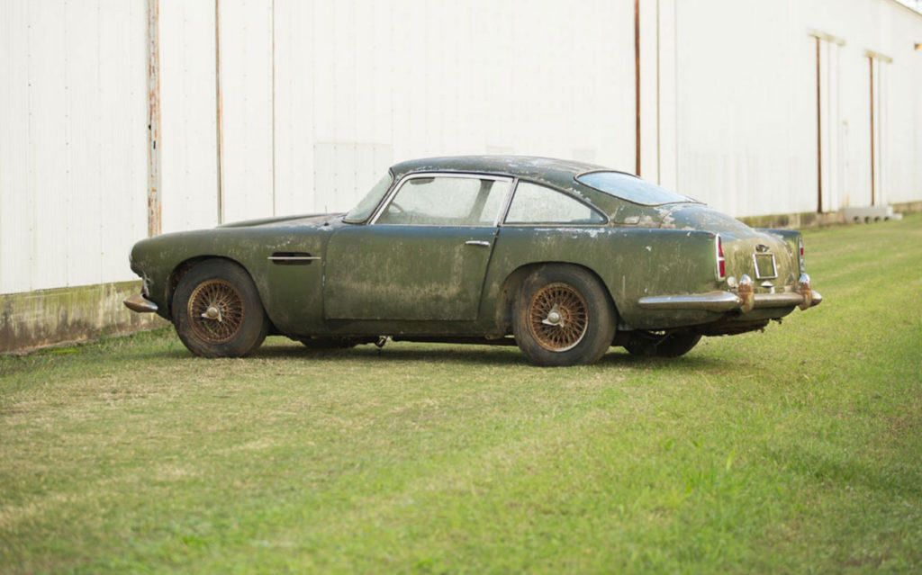 Most rátaláltak, és árverésre bocsátják, méghozzá a fellelési állapotában. A képek szerint a kiszabadításához láncfűrészre is szükség volt, annyira benőtték a fák és bokrok az autót. Szomorú látni az elhanyagolt sportkocsi pusztulását, hiszen egykor egy vagyont ért a 3,7 literes, 240 lóerős hathengeressel szerelt DB4.