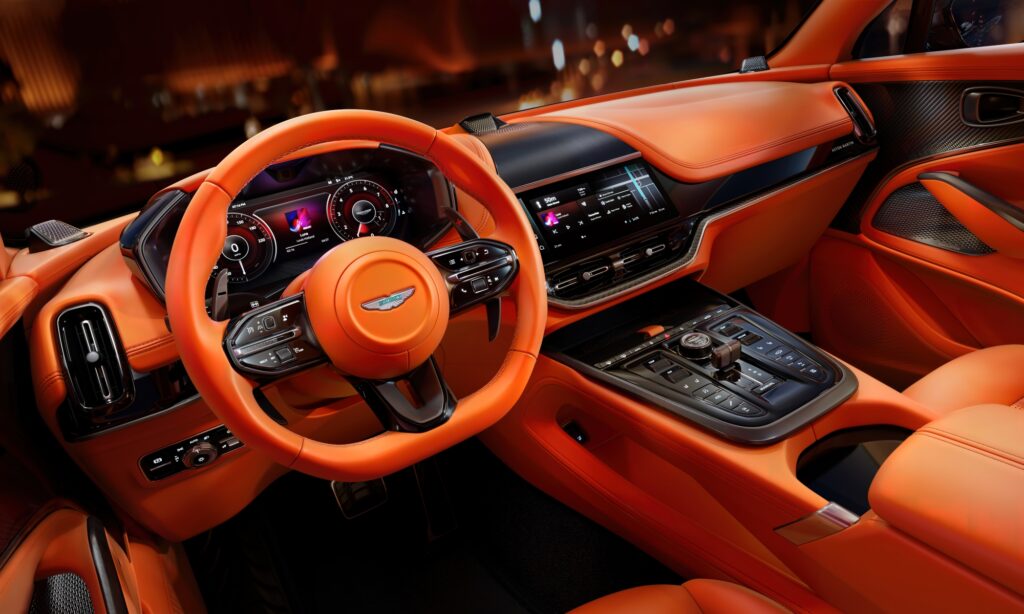 Háromküllős sportkormánya mögött egy 12,3 colos képernyőn jelenik meg a virtuális óracsoport, a 10,25 colos központi érintőkijelzőn pedig új menürendszer jelenik meg. Vezeték nélkül csatlakoztatható az Apple CarPlay és az Android Auto, továbbá applikáció is kapcsolódik az autóhoz. Az eszközöket USB-C csatlakozón keresztül lehet tölteni az Aston Martin SUV-ban.