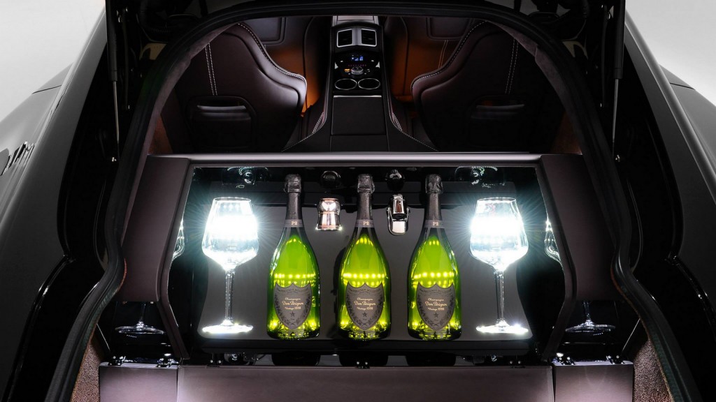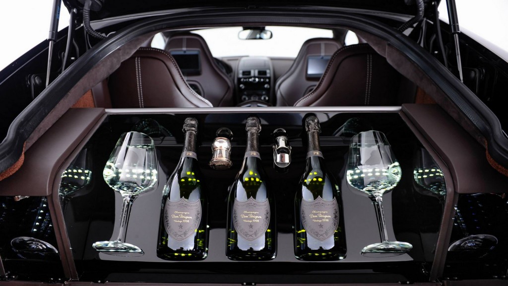 A helyi Aston Martin-kereskedés és a Dom Perignon pezsgő együttműködésének köszönhetően egy Aston Martin Rapide S csomagtartóját rendezték be elég vonzóan: a három palack 1998-as pezsgő mellé két kristálypohár is került – tény, hogy kicsit exkluzívabb így elmenni a kiemelt ügyfelekhez, mint egy futárt küldeni.