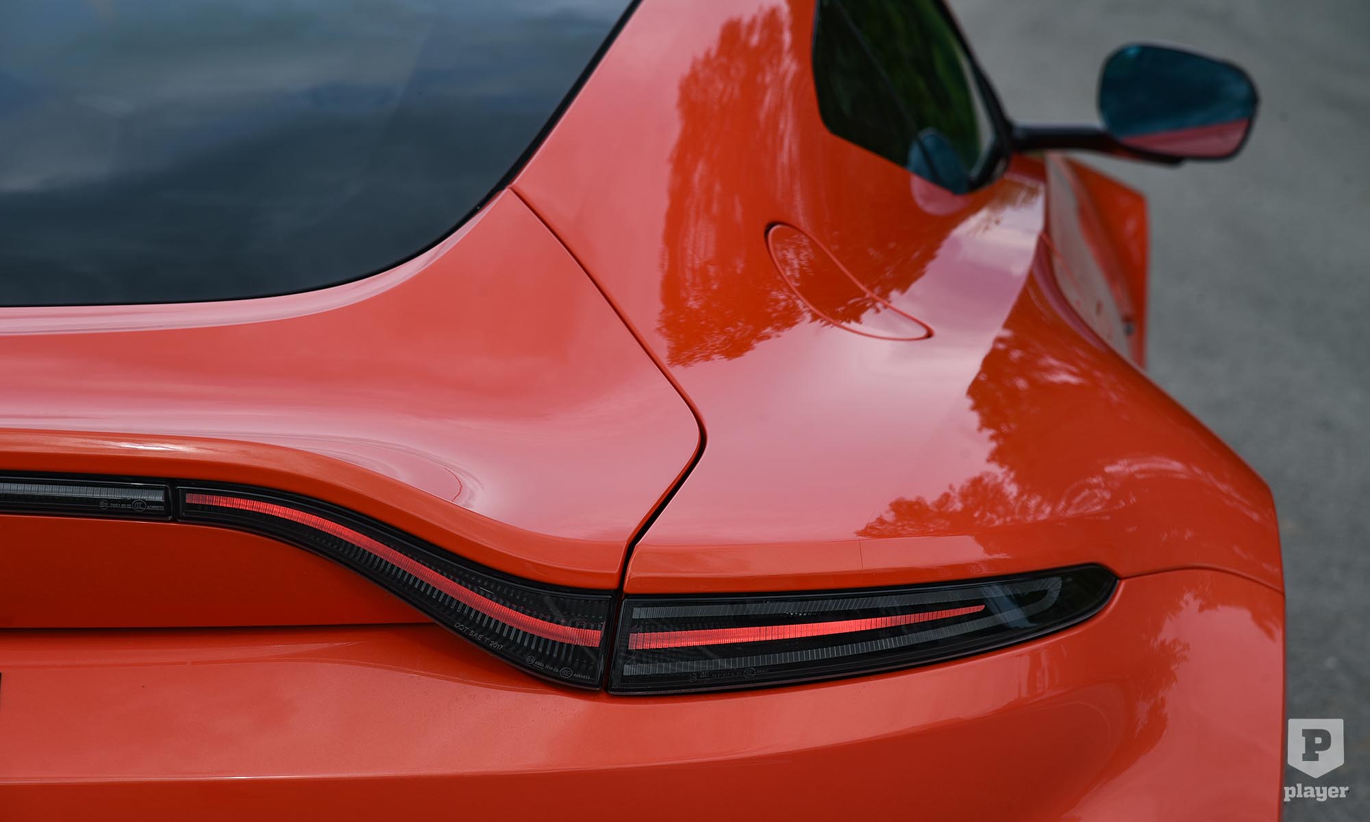 hagyományos alakú hűtőráccsal és felfelé nyújtott fényszórókkal. A szúrós tekintet ezúttal a nappali menetfények feladata, és dizájnban hátul is erős maradt az autó, látványosan ívelt fénycsíkja keretezi a légterelőt formáló hátsóját. Az Aston Martinnak nincs szüksége versenyautósan nagy hátsó szárnyra, amivel a Vantage megőrzi a hűvös eleganciáját.