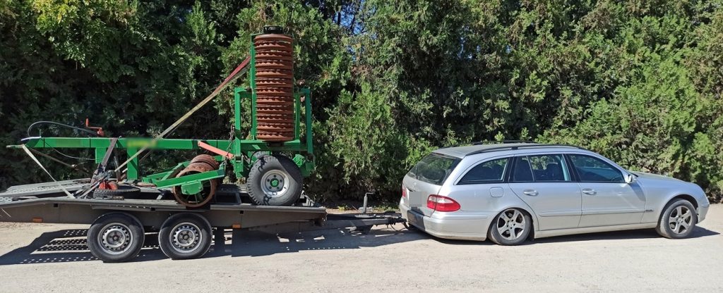 Szerda délután vonták intézkedés alá a rendőrök egy kombi E-Mercedesből és utánfutóból álló szerelvény vezetőjét. A képen is látszik, miért: