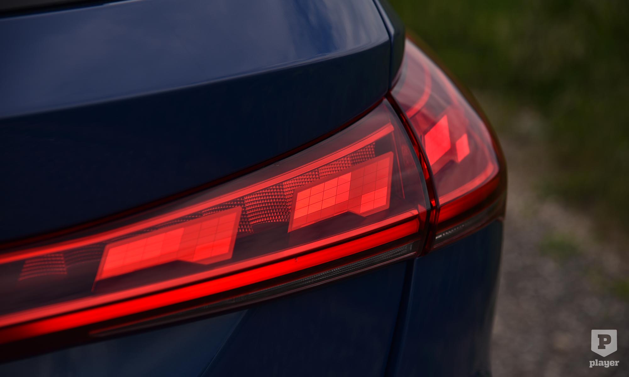 Szerencsére megúsztuk az osztott fényszórókat, hiszen a nappali menetfényt a fényszóró felső részére tették, és az alakját többféle mintából választhatjuk ki a menüben. Szintén roppant látványos a hátsó lámpák fénycsíkja, a feláras OLED változat pedig különféle animációk vetítésére is képes. Sokküllős mintájú, 20 colos könnyűfém kerekeivel és