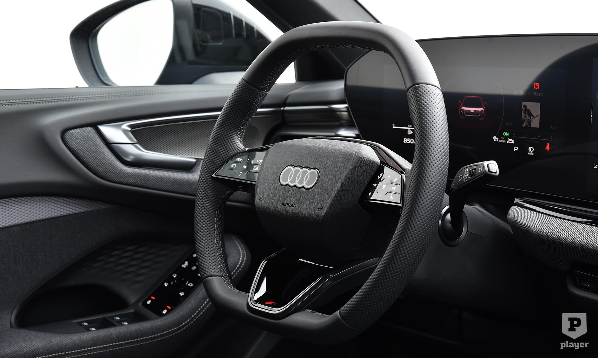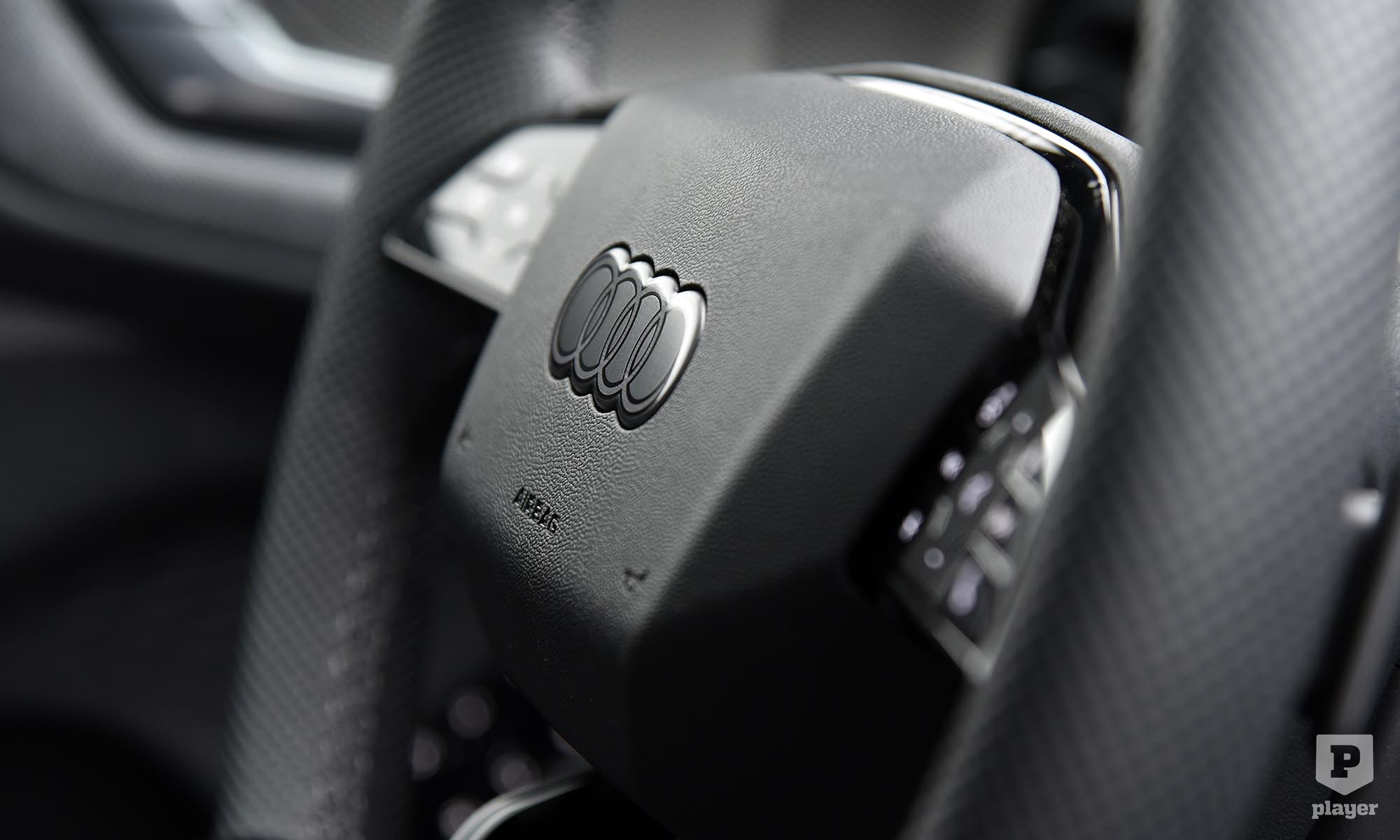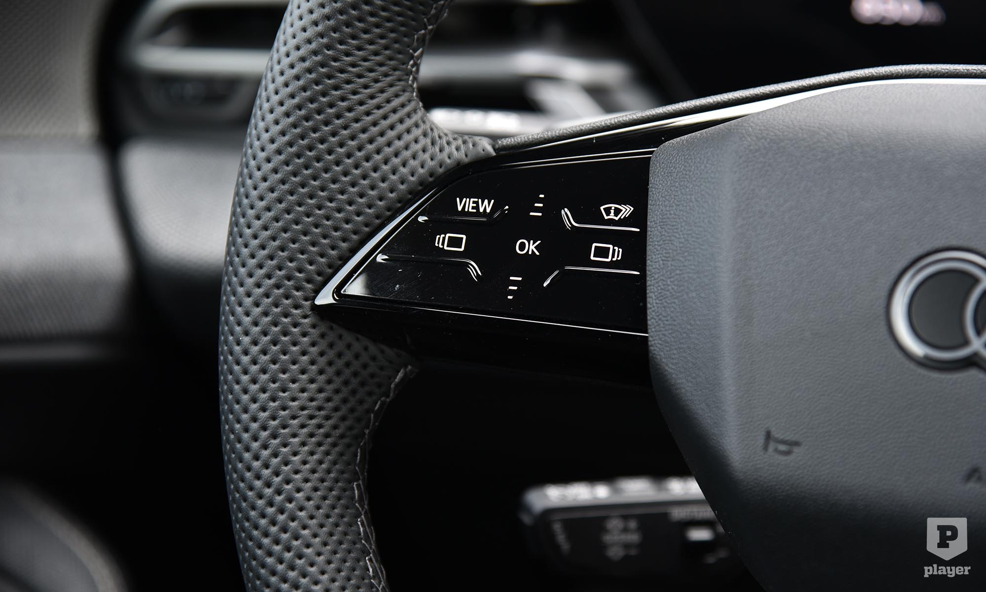Felül is lapított kormánykereke remek fogású, de a küllőkön lévő érintőgombok kapcsolási érzete nem az igazi.