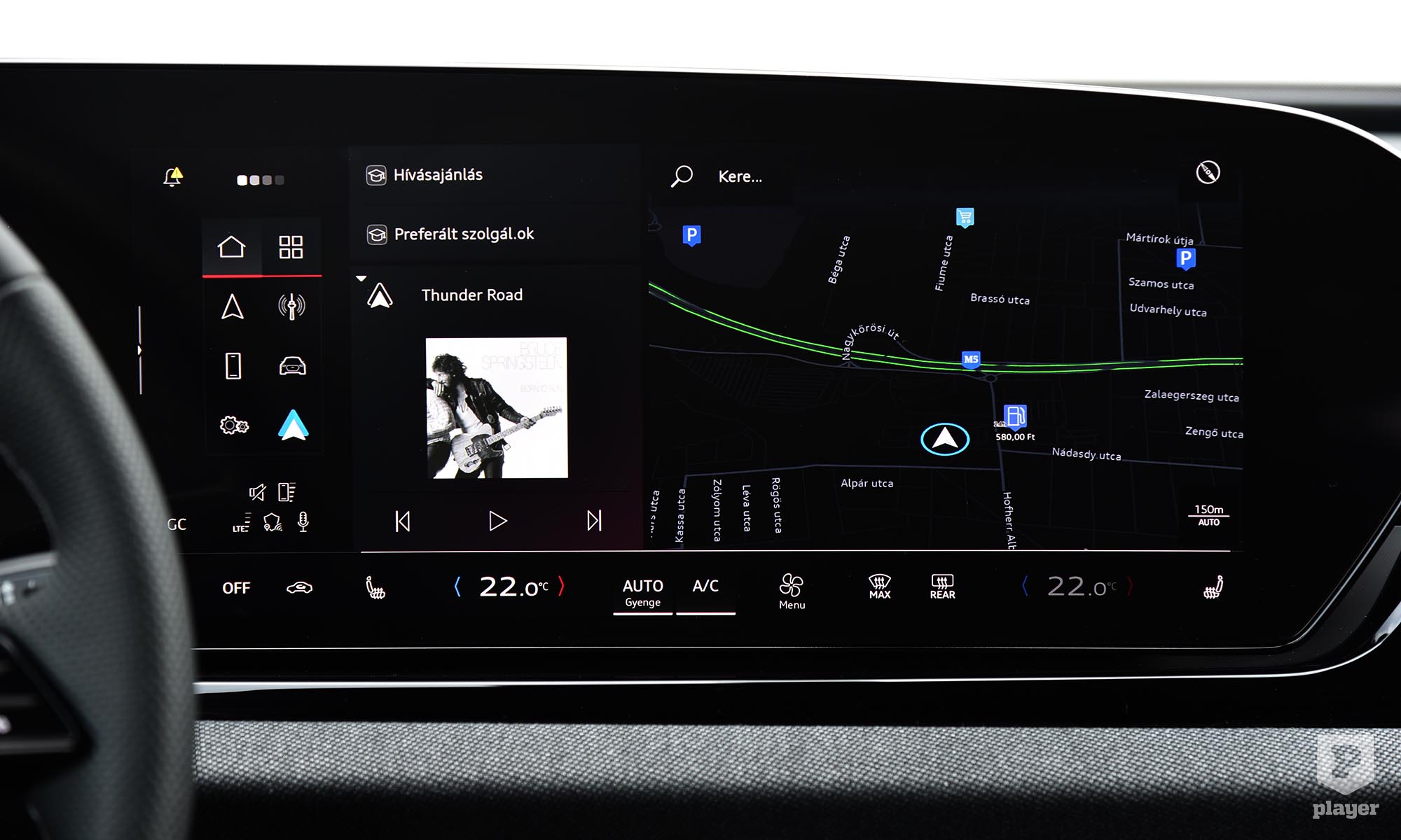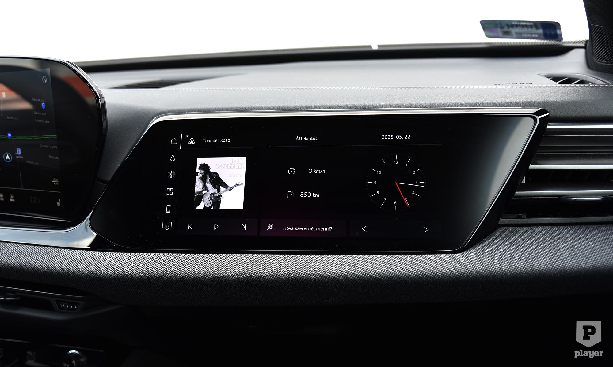 Szerettünk sokat és messze menni az A5 Avanttal, hiszen sportos kormányzása, magabiztos útfekvése és az adaptív futómű csillapítása olyan, amit csak egy tradicionális márka prémiumautója tudhat. Csak azért nem mondanánk teljesen konzervatívnak, mert a belsejében a digitális világ vette át az uralmat, a műszereket 11,9 colos kijelző mutatja, a legtöbb funkciót a 14,5 colos érintőképernyőn érjük el, és még az utas szórakoztatására is került elé egy 10,9 colos képernyő.
