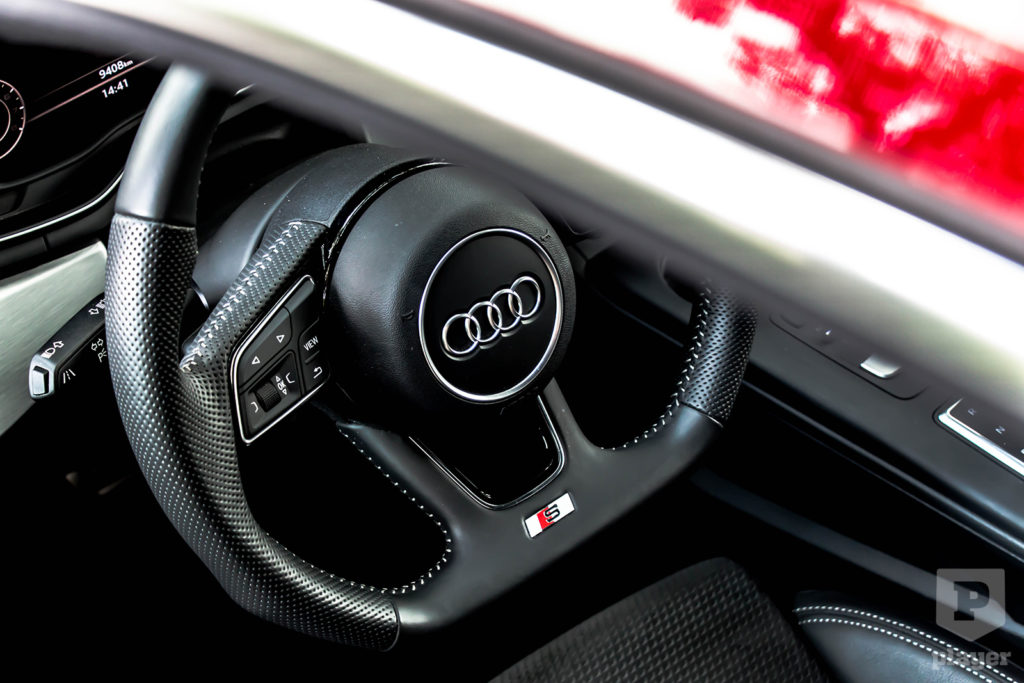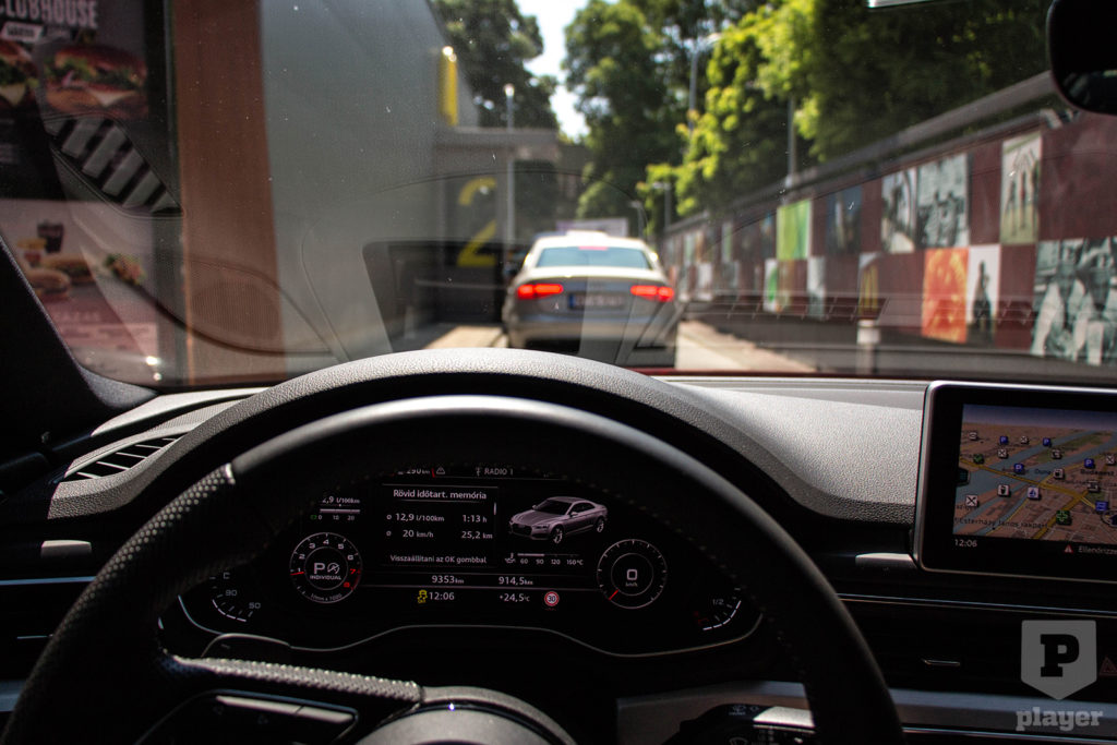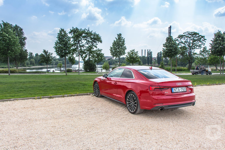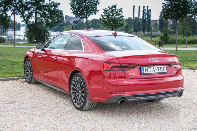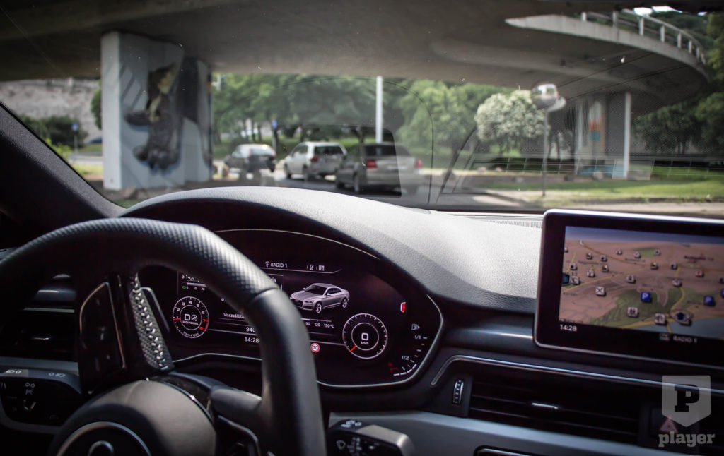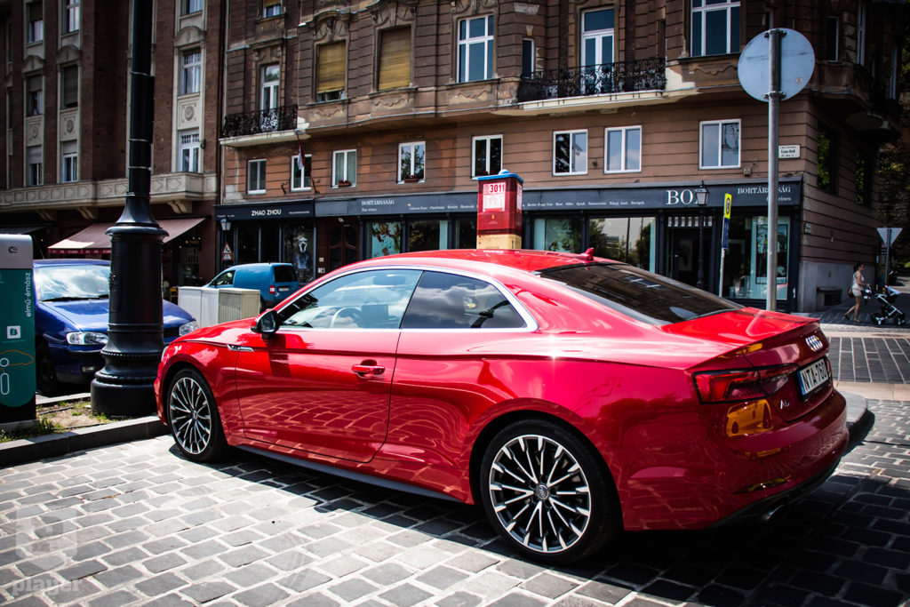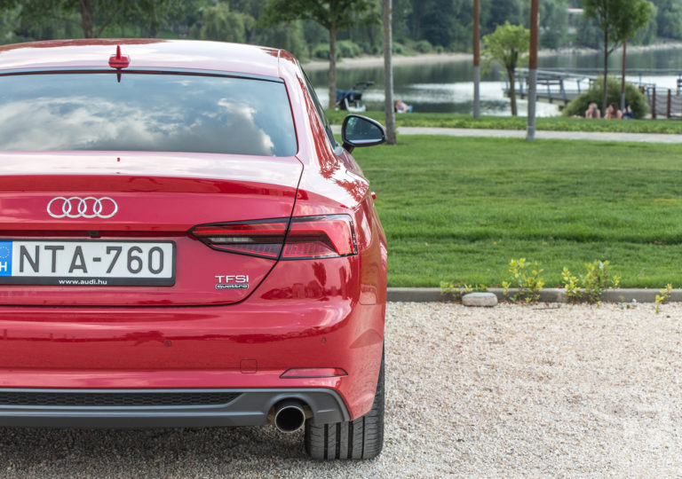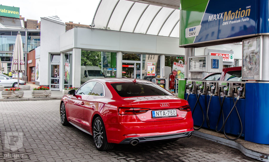 Jól sikerül a megbeszélés, visszafelé felpörögve gyakran odalépsz, jöjjön be a hang egy kicsit, olyan csendes az autó, hogy átlagos menetben kihallatszanak a gondolataid, úgyhogy inkább gyakran gyorsulsz életre-halálra két lámpa között. Az A5 is szereti a helyzetet, kifejezetten jól indul, és nem kérdez vissza, csak ugye meg ne büntessenek a kékek, úgyhogy visszafogom magam, mégiscsak városban vagyunk, meg különben is, ésszel közlekedjünk, mert szomjas a drága. Nem is írom le, hogy városban mennyire lehet nehéz a lábunk, mert egy ilyen teszthét nem mérvadó, mi nem a fogyasztást optimalizáljuk ilyenkor. Mindenesetre készüljünk rá, hogy a gyári 7.4 literes városi fogyasztás inkább egyessel kezdődik és kétszámjegyű, a többi pedig azon múlik, hogy sikerült-e a megbeszélés. Amikor tankolod, akkor is szeretni kell...