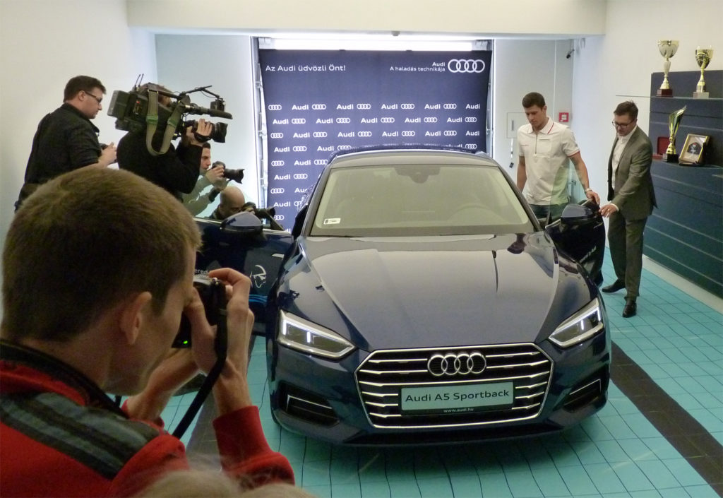 Ezek szerint a legjobb, autóhasználattal segített-elismert sportolók csak az importőr jó ízlésében bízhatnak, bármit kapnak, kedvesen meg kell köszönniük, aztán pedig használniuk magyarországi tartózkodásuk során, őszinte vagy kevésbé őszinte mosollyal. Gyurtának mázlija volt: bár alapmotoros kocsit állítottak össze neki, a 150 lóerős benzin- és dízelmotorok megérkezéséig az A5 Sportback alapblokkja a 190 lóerős TDI, ami az automata váltóval és az összkerékhajtással igazán kellemesnek tűnik.