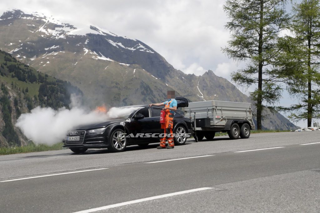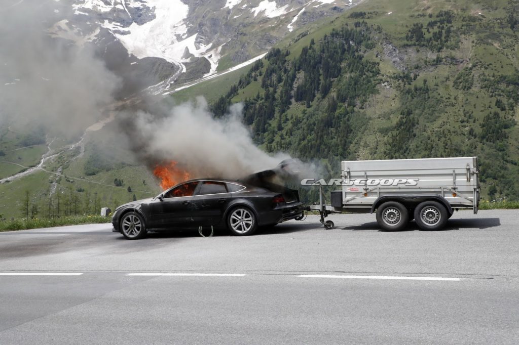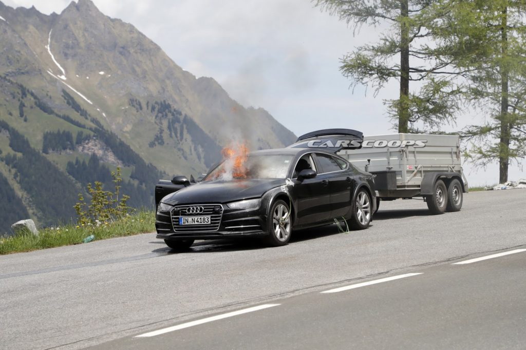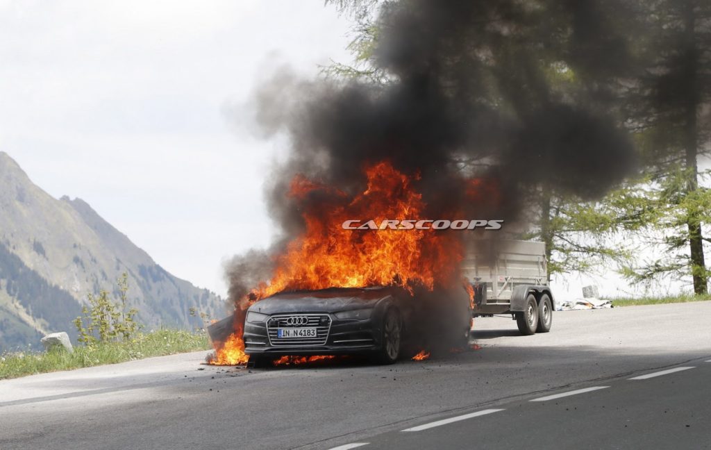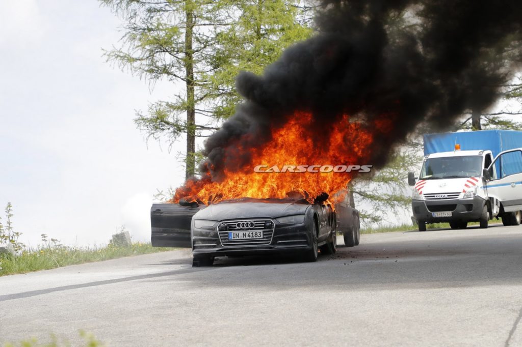 Az osztrák Alpokban tesztelték a következő generációs A7-es prototípusát, amikor lángok csaptak fel a motorból, és bár próbálkoztak egy kézi tűzoltó-készülékkel eloltani, ez nem vezetett sikerre, és a kocsi gyakorlatilag porig égett. Aztán megjöttek a tűzoltók. Személyi sérülés nem történt, a sorozatgyártás megkezdéséig pedig lesz még idő üzem- és tűzbiztossá tenni a típust.
