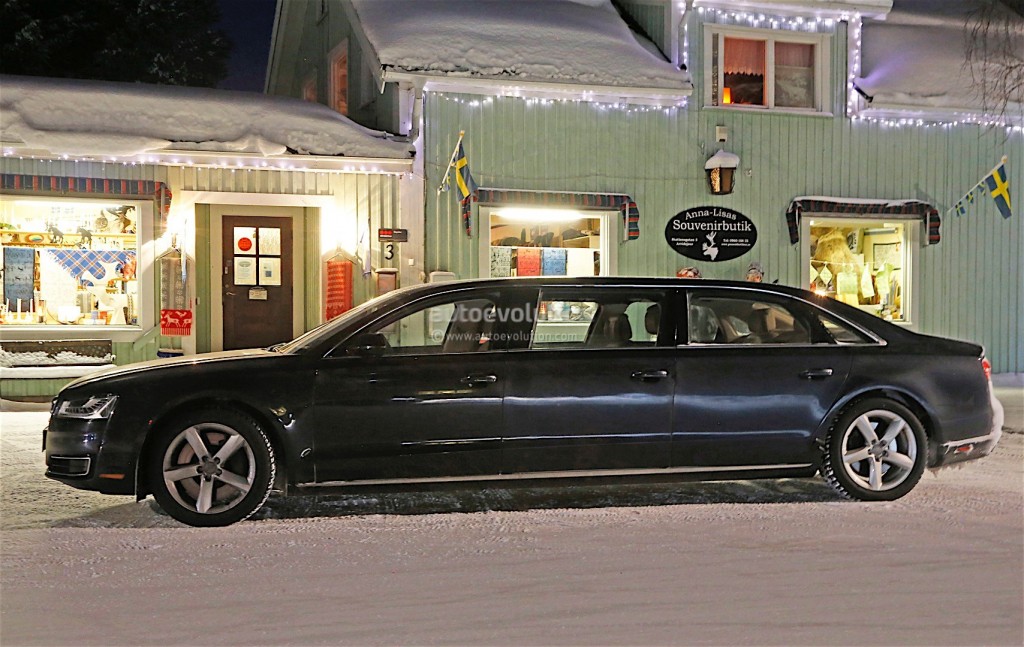 Svédországban fotózták le ezt az álcázás nélküli limót – nem tudunk róla semmit, hogy egy kisebb műhely munkája-e, netán egy gyári prototípus, de tény, hogy egy csapásra leértékelné az eddigi A8L-eket.