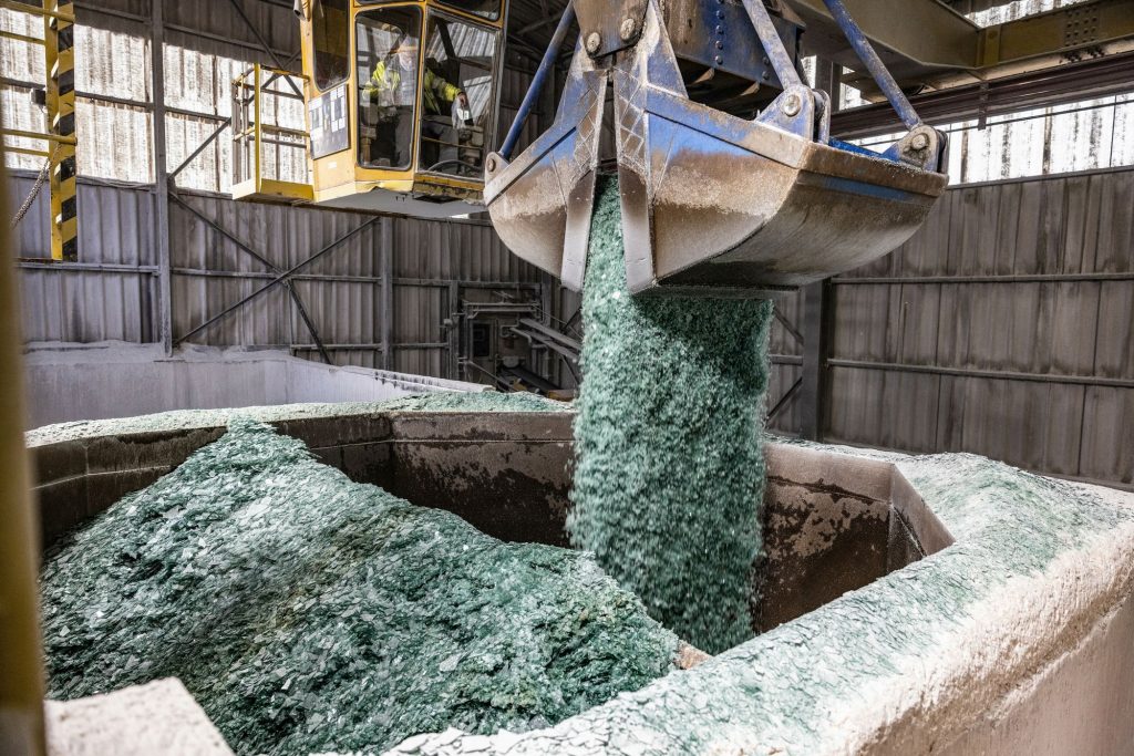 A tiszta üvegport ezután a Saint-Gobain-nél olvasztják, táblásítják, majd formázzák. Itt egy kicsit borul a koncepció, mert a táblaüvegek minőségi előírásainak való megfeleléséhez még a klasszikus üvegipari alapanyagokat is fel kell használni, a reciklátum aránya az új üvegben jelenleg legfeljebb 30-50% lehet.