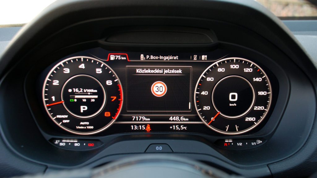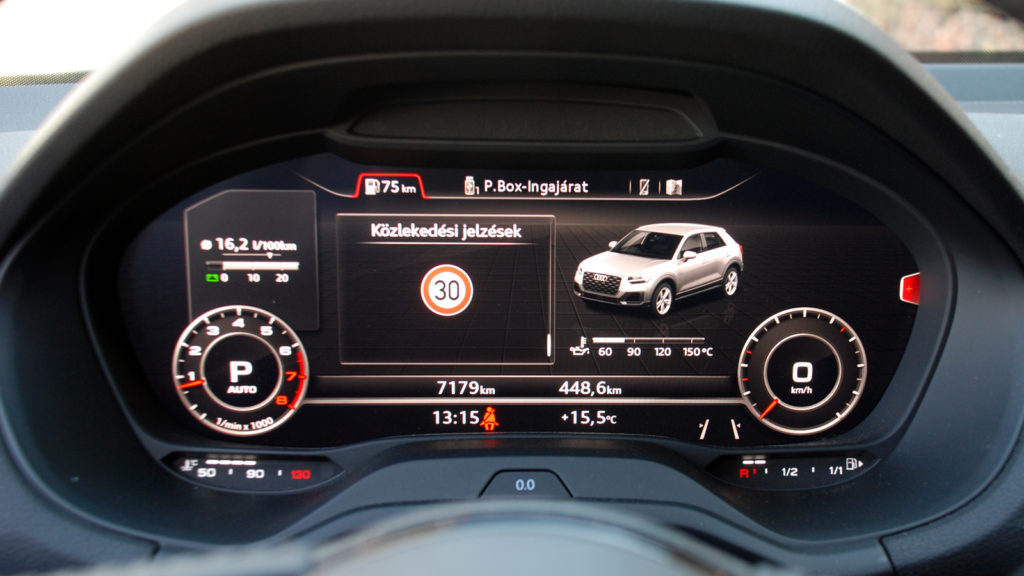 Ezeket persze úgy rendezték, hogy a vezetőtől távolabb essenek, az pedig egészen zseniális, hogy a spórolás ellenére a belső nem csak dizájnos, hanem valahogy mégis prémiumhatású. Ebben azért nagy szerepet játszik, hogy a tesztautó a hétmilliós Q2-alapárnak a kétszeresébe került, a virtuális cockpit, a kétszínű belső a matt piros alumíniummal, a head-up display, a mindenféle fedélzeti rendszerek, a multikormány és a többi extra pedig bármilyen autót felhúzna.