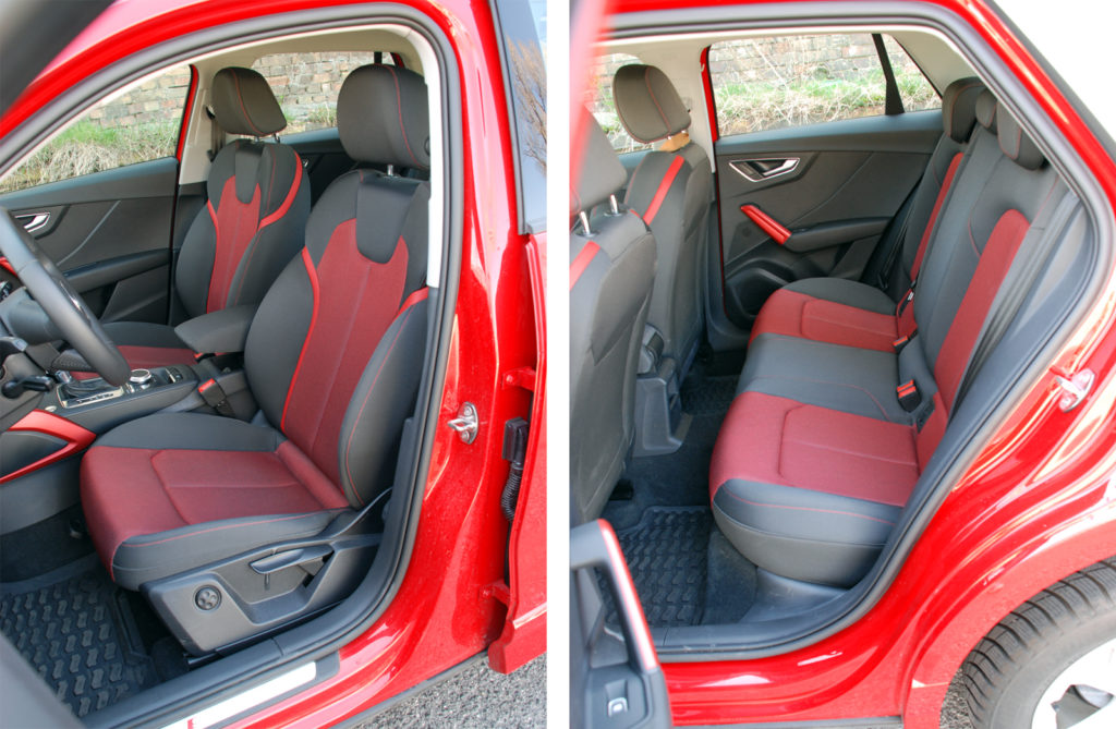 Érdekes, mennyire másképp látják a kollégák a méreteit: a kívülről kicsi, kívülről nagy, belül tágas és belül szűk mindenféle kombinációja előfordul a jellemzések között. A tények azok, hogy a Q2-es 4,2 méter hosszú, vagy inkább rövid, és 1,8 széles, elöl pedig kényelmesen elférni. Hátul meg elférni – a Q2–Q3–Q5–Q7 sorból következtethető, hogy nem a Q2 az ideális családi kocsi (bár a csomagtartója derék, 400 literes), az autóvásárlók mindent elsöprő crossoveres, szabadidő-autós vágyai hívták életre, mint már említettem.