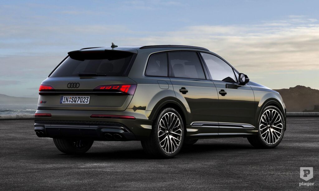 akárcsak a Q4 e-tronban. A lökhárítók és a hátsó lámpák is újak, utóbbiak most először OLED változatban is rendelhetők, a Q7-ről pedig ezúttal sem rejtették el a kipufogóvégeket.