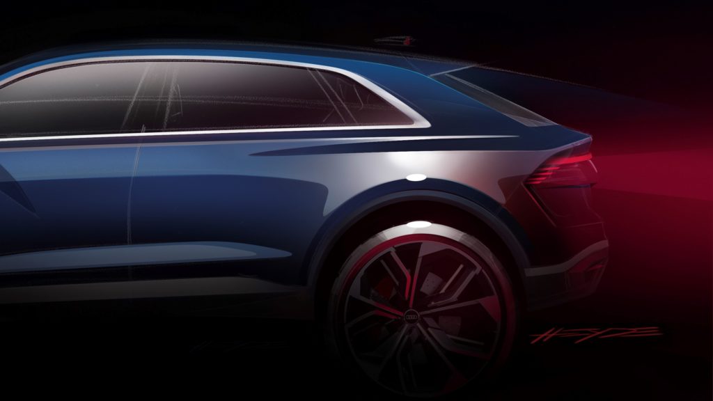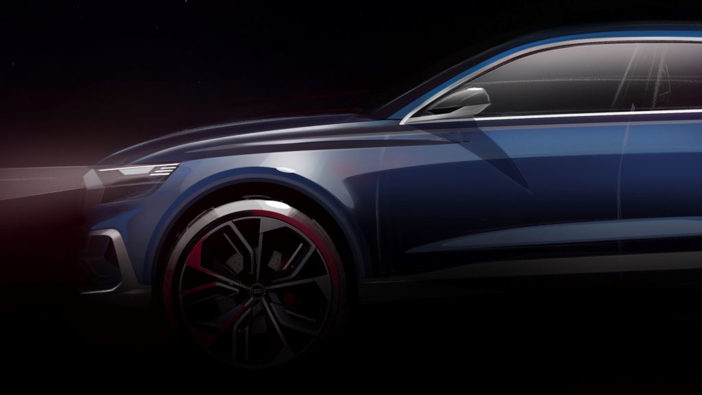 A januári detroiti autószalonon leplezik le azt a tanulmányautót, ami a Q7 alapjára épül, és a gyártásba kerülő Q8 előfutárának számít. Egyelőre csak az orrát és az oldalát mutatták meg két dizájnterven, de már ezek is elég sok mindent elárulnak. Az már biztos, hogy nagy légbeömlős orrával a Q8 meglehetősen marcona külsőt kap.