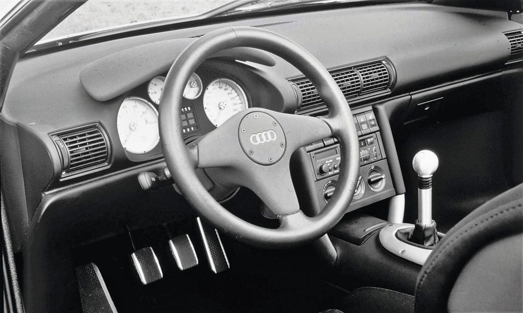 A képekről nem derül ki, de nem valami nagy, 4,23 méter hosszú, 1,77 méter széles és mindössze 1,17 méter magas. A kerekei 18 colosak, amire 205/55 méretű abroncsok kerültek, a puritán belső a kor többi Audi modelljének elemeiből készült.