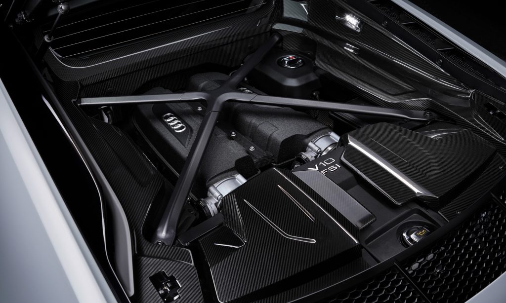 5,2 literes, V10-es szívómotorja 620 lóerőt üvölt ki magából és 565 Nm nyomatéka van, örömmel forog bele a 8700-ba. Igazi, régi vágású sportautó!