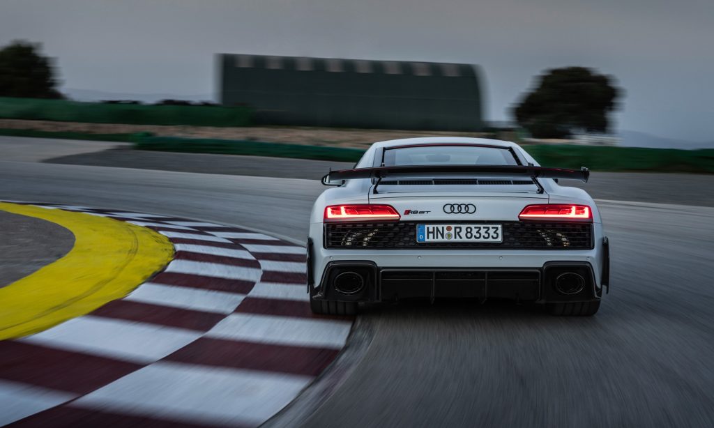 Akárcsak a TT RS Iconic Edition esetében, úgy az R8 GT-nél is apró légterelőket kapott az első lökhárító, és hattyúnyak rögzítésű hátsó szárnyat tettek rá. A felső rögzítés azért előnyös, mert a spoiler hasznosabbik felülete nagyobb maradhat, ezt alkalmazzák a versenyautókon is.