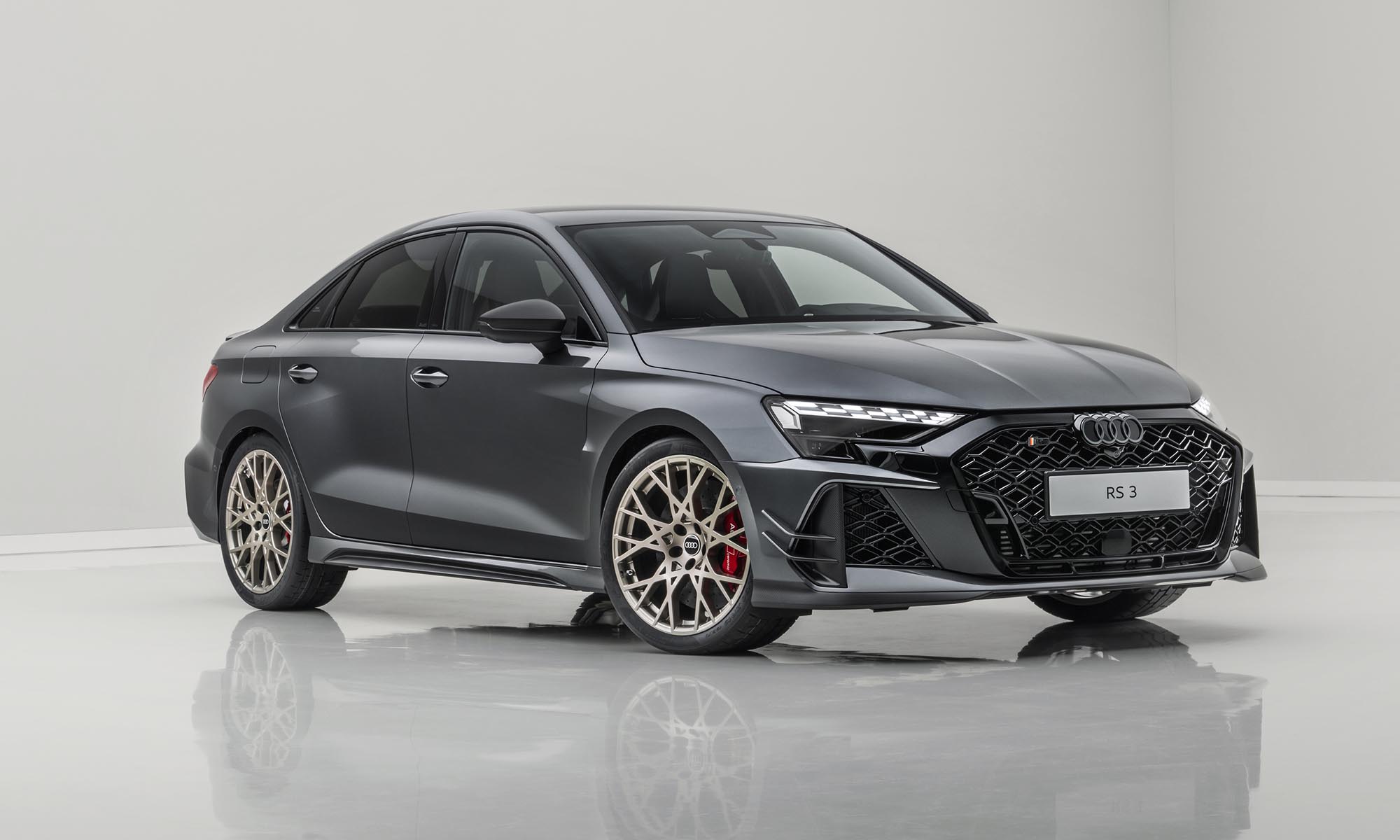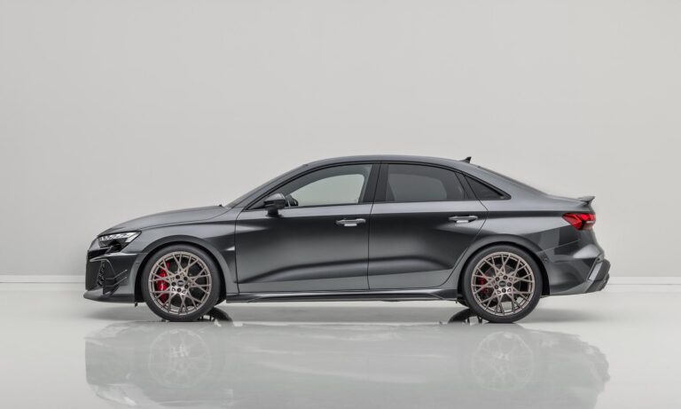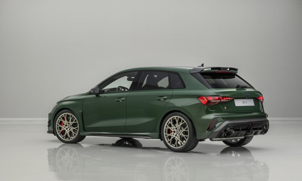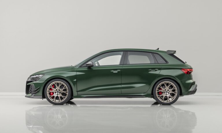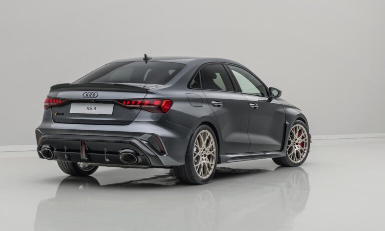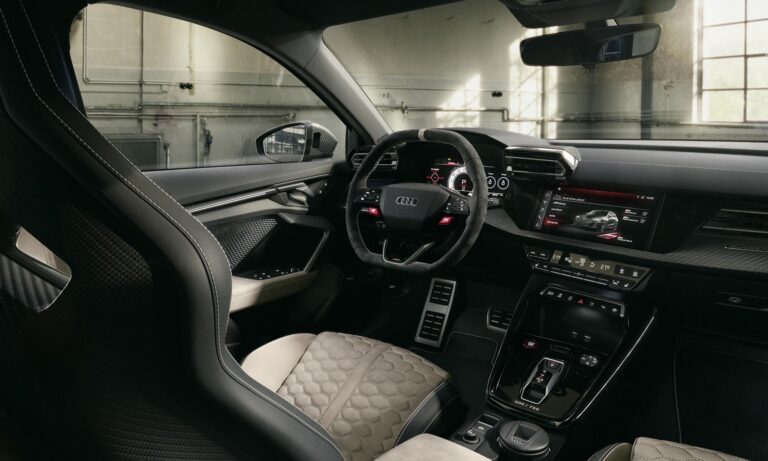 A különleges hangulat az utastérben is folytatódik, a karbonvázas sportülések neodímium-aranyszín díszítést és fehér varrást kaptak, a digitális műszeregység pedig egyedi, a jubileumhoz méltó grafikát jelenít meg, ami a ’94-es RS 2 Avant fehér számlapjait idézi. Ha szeretnél egyet a gyűjteményedbe, akkor nem árt sietned, mert világszerte összesen 750 példány készül, ebből 585 darab Sportback és 165 darab szedán. A sorszámozott plakettel ellátott különlegesség ára Németországban 108 ezer euró környékén indul, ami komoly többlet a széria RS 3-hoz képest, de cserébe