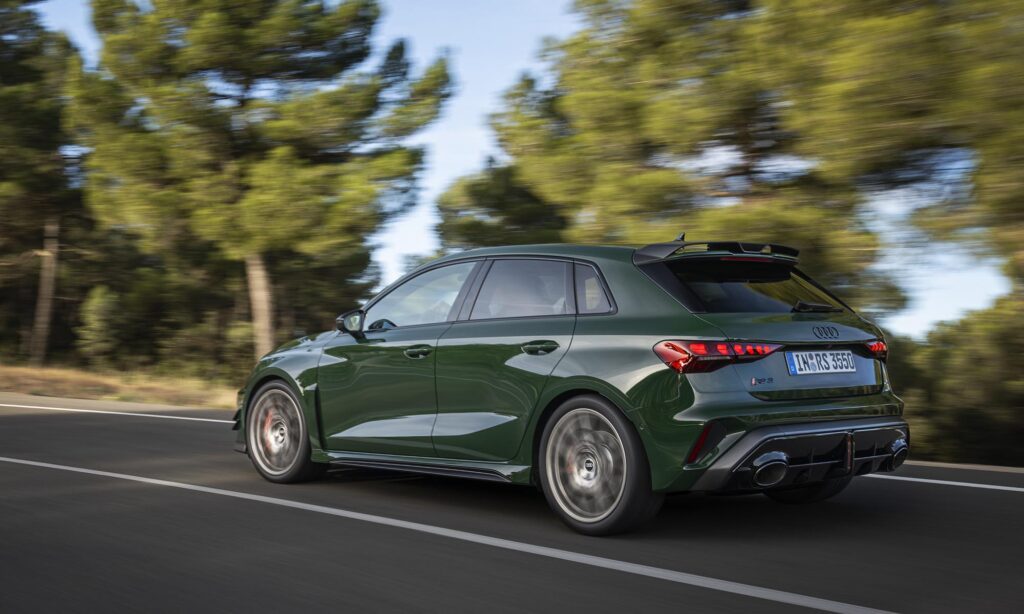 1976-ban, a második generációs Audi 100-ban vezette be az öthengeres motort az Audi, az azóta eltelt ötven évet pedig ralisikerek, bajnoki címek és ikonikus utcai autók fémjelezték. Az új RS 3 competition limited méltó tisztelgés ezen örökség előtt. 2,5 literes TFSI motorja ezúttal is 400 lóerőt és 500 Nm nyomatékot présel ki magából, amivel 3,8 másodperc alatt gyorsul százra, és 290 km/óra a végsebessége, de a mérnökök minden eddiginél szigorúbbra húzták a körítést. Az igazi különlegesség a hangélményben rejlik, ugyanis a tűzfal környékén csökkentették a zajszigetelést, a sportkipufogó szelepei pedig korábban nyitnak, így az utastérben minden eddiginél tisztábban hallható az összetéveszthetetlen, 1-2-4-5-3-as gyújtási sorrendű morajlás.