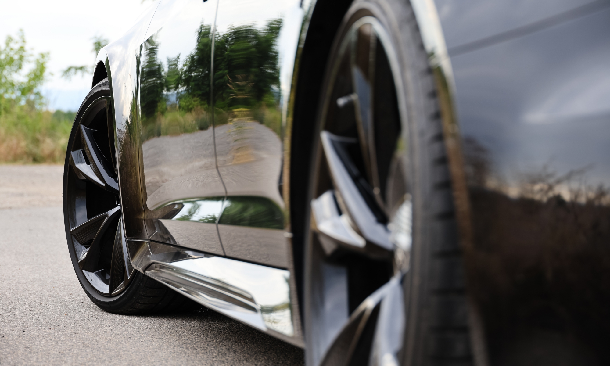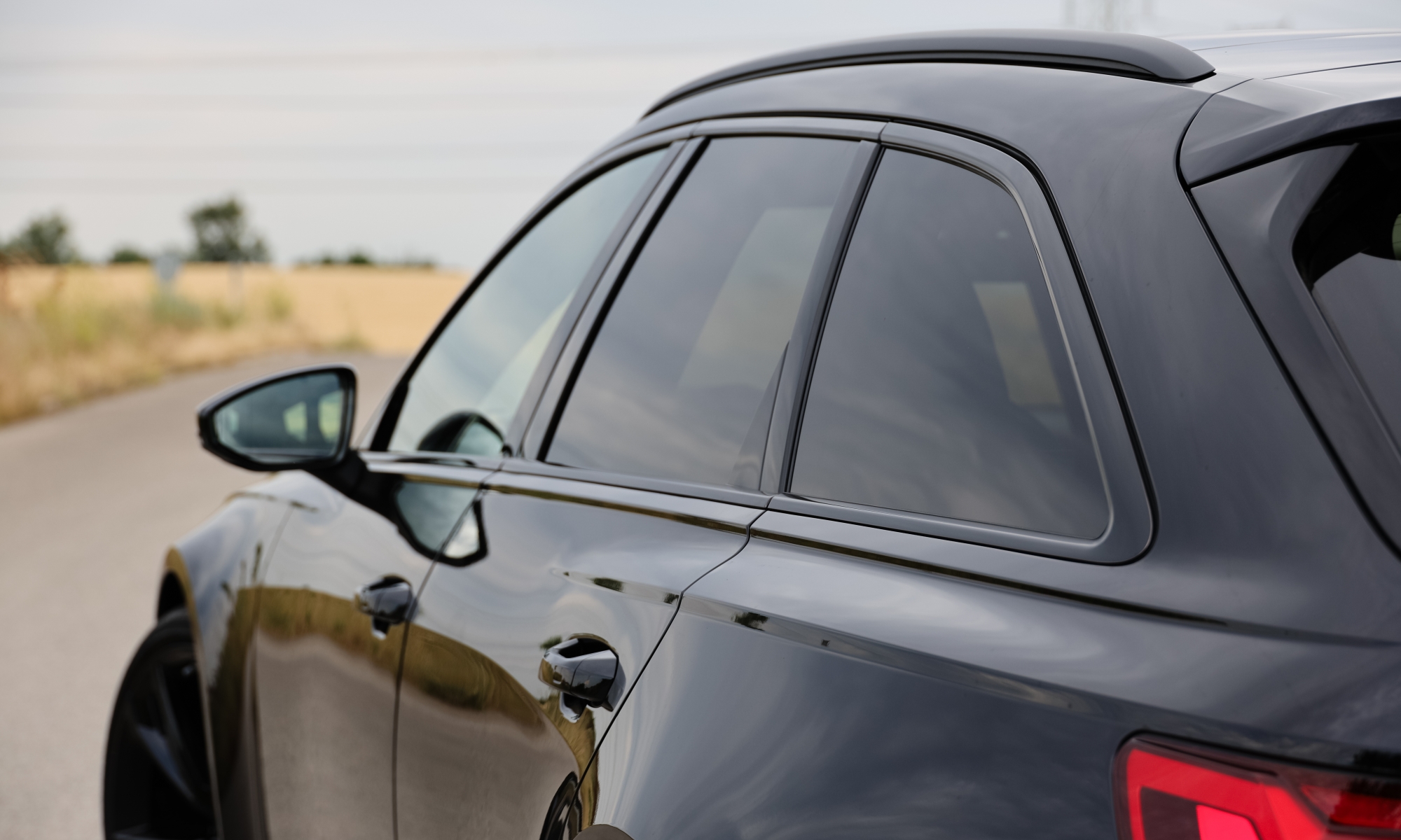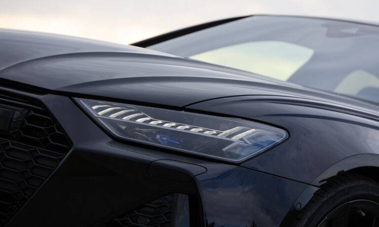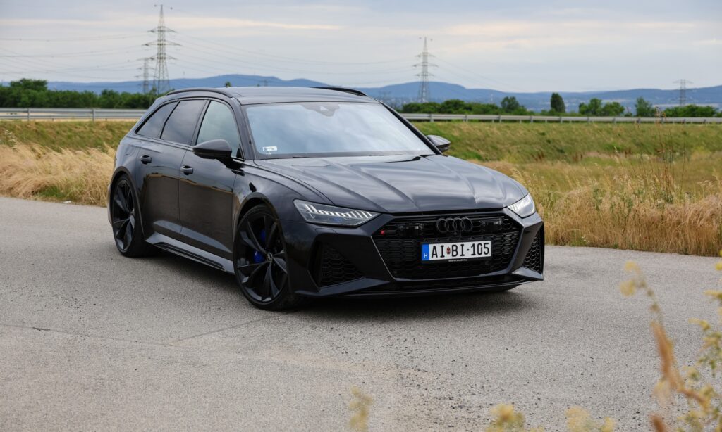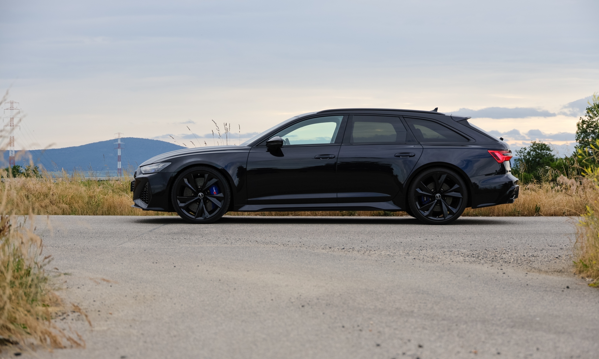 Baljósabb kiállása van, mint Darth Vadernek bármikor a Star Wars történetében, az Audi RS 6 Avant Performance ebben a napsütésben kéklő Sebring feketében maga a tömény technokrata kegyetlenség. Sokat elmond az RS 6 Avantról, hogy a kombi A6-tal csak néhány karosszériaelemen osztozik, a nagyobbat terpesztő nyomtáv miatt az RS 7 Sportback arcát viseli és a tükörben jó ránézni, hogy oldalanként 40 milliméterrel szélesebb. Élesre vasalt lemezein a párhuzamosok még a végtelenben sem találkoznak, a versenyautók stílusában kigyúrt sárvédő szélesítések pedig úgy feszülnek rá az ötküllős felnikre, mint Gymshark Onyx a masszív izmokra.