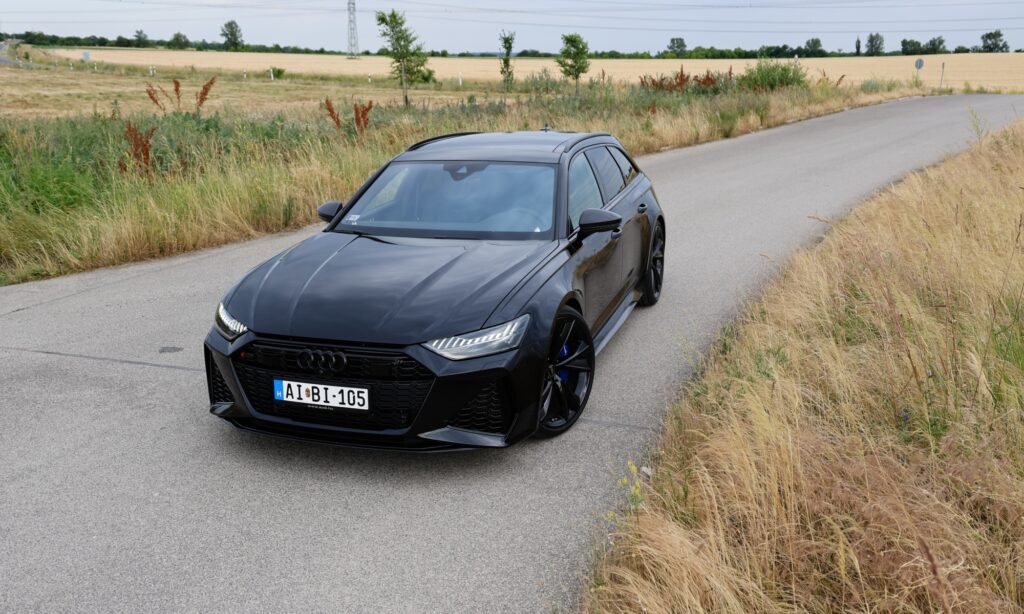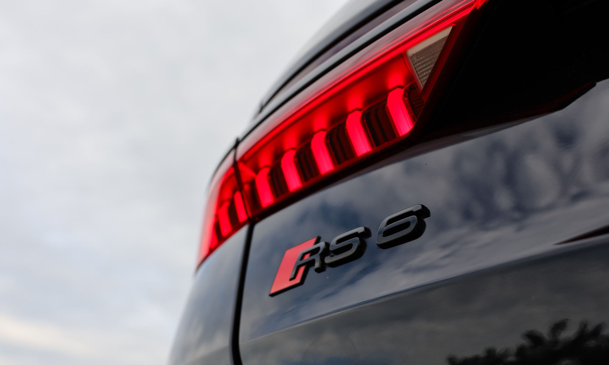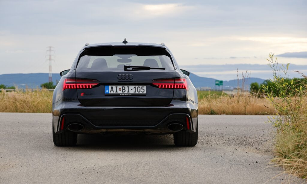 Megvillannak a hűtők a ritka rácsozású maszk mögött, a lökhárítókban lévő nyílások is funkcionálisak, a gépháztető élénél pedig az Audi Sport quattro hármas osztású nyílásai bukkannak fel. Fenyegetőek a sötétség különböző tónusai a fekete hűtőmaszkkal és ablakkeretekkel, valamint a szénszálas tükörházakkal és küszöbökkel. Széles és lapos az RS 6, a hosszan elnyúló tetővonallal és a döntött tetőoszlopokkal pedig szépen idézi meg az Audi 100 Avantot. Két ordas átmérőjű, ovális kipufogóvéget zenget meg a elsöprő erejű biturbó V8-as.