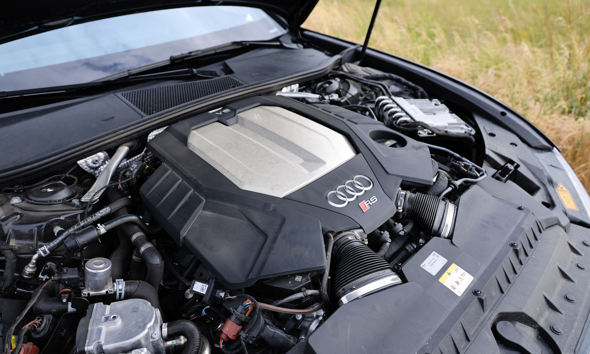 Kilencven fokos hengerszögű, közvetlen befecskendezésés, nyolchengeres benzinmotorjának furata és lökete is 86 milliméteres, forgattyúsháza öntött alumínium, gyújtássorrendje pedig 1-3-7-2-6-5-4-8. Két kettős megfúvású turbófeltöltője a hengersorok közötti forróságban tolja a levegőt a szívócsatornába, hogy a gázoknak minél kisebb utat kelljen bejárniuk, így rövidebb a reakcióideje és kompaktabb a felépítése. 48 voltos mild hibrid rendszere már guruláskor leállítja a motort, de részterhelésen leállítja négy henger befecskendezését és gyújtását, elzárja a szívó- és kipufogószelepeket, hogy több százas benzin maradjon a 73 literes tankban. Az Audi RS 6 Avant Performance 6000-es fordulaton 630 lóerőt üvölt ki magából és 850 newtonméter a csúcsnyomatéka, tehát rohadt nagyot tud szakítani.