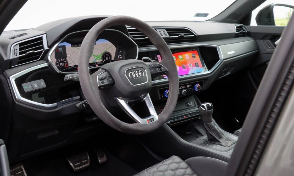 Sziluettje miatt azonnal fellobban bennem az ellenszenv, ahogy bent körbenézek a néhol igényes részleteken, máshol sivár műanyagokon, nem csillapodik bennem az érzés, hogy az Audi RS Q3 Sportbackből menekülni szeretnék, aztán megnyomom a Start gombot és súlyos robajjal indul az öthengeres turbómotor.