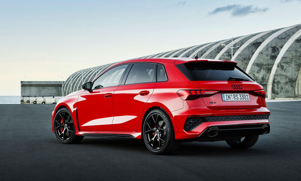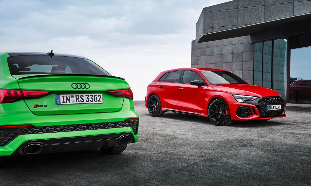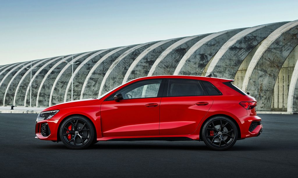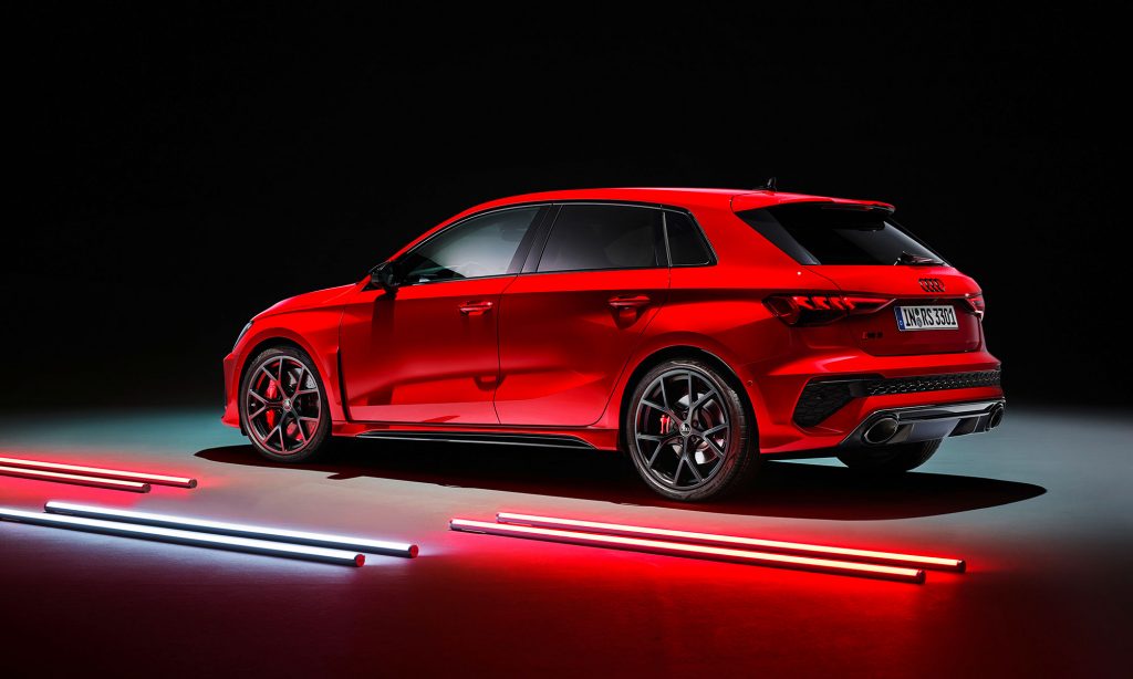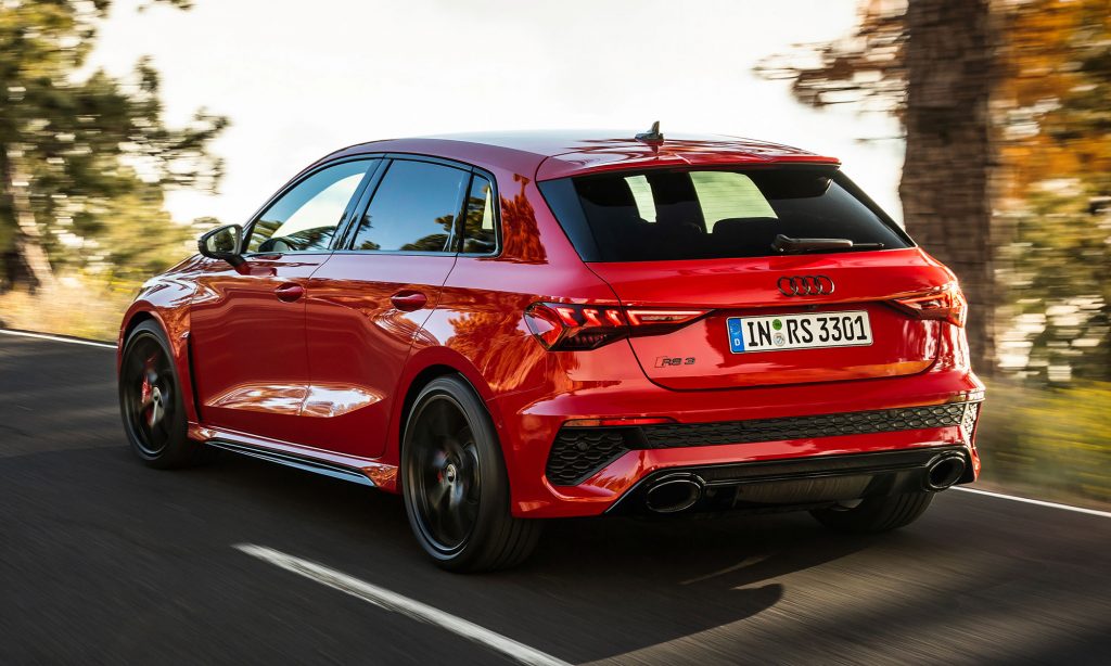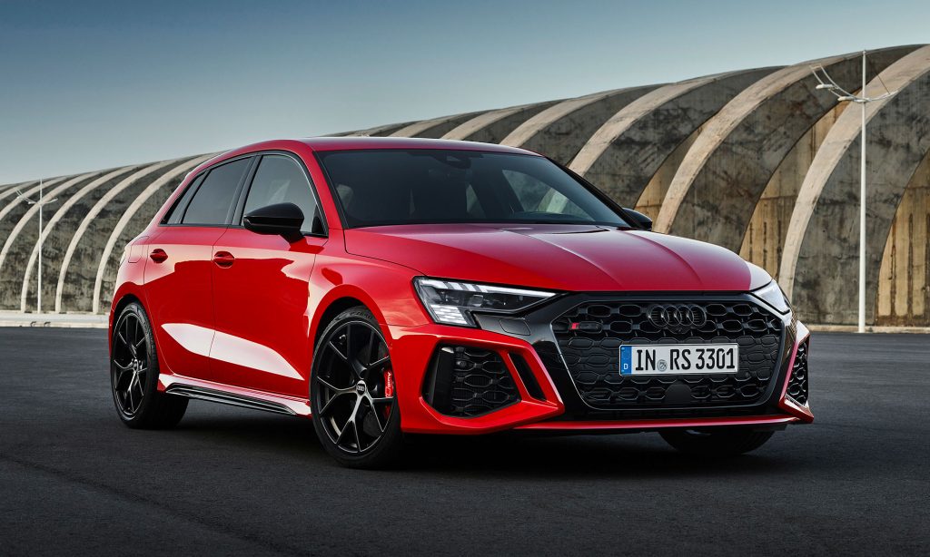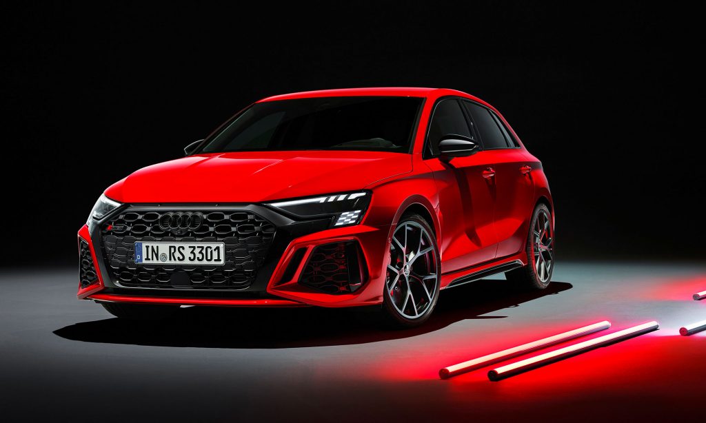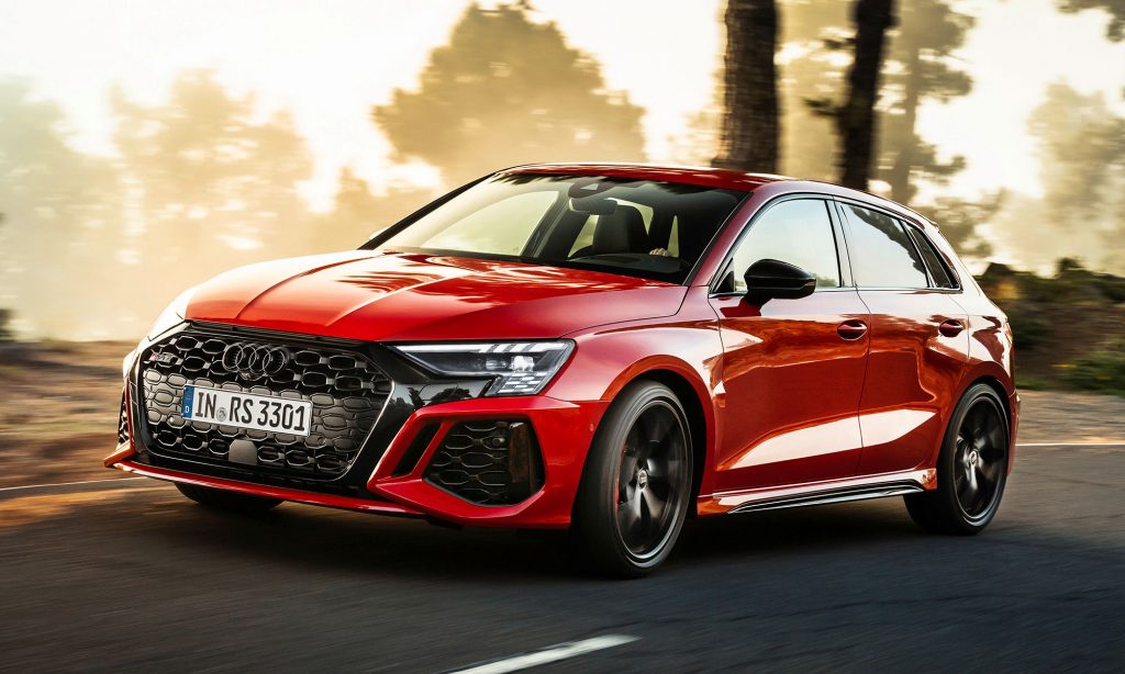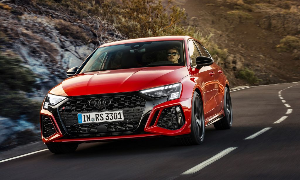Az új generációs A3 megjelenése után számíthattunk a legsportosabb RS3 változatra, ami ezúttal is ötajtós és lépcsőshátú karosszériával mutatkozott be. A legjobb az egészben az, hogy az Audi megtartotta az elődjéből az öthengeres motorját, nem kellett kisebb köbcentis, elektromos rásegítésű motorra váltania, amiért máris imádjuk.
