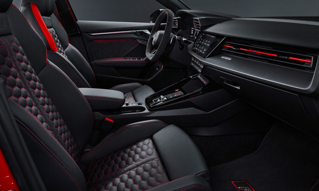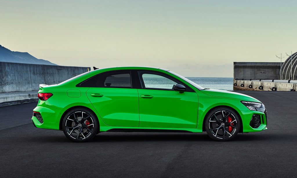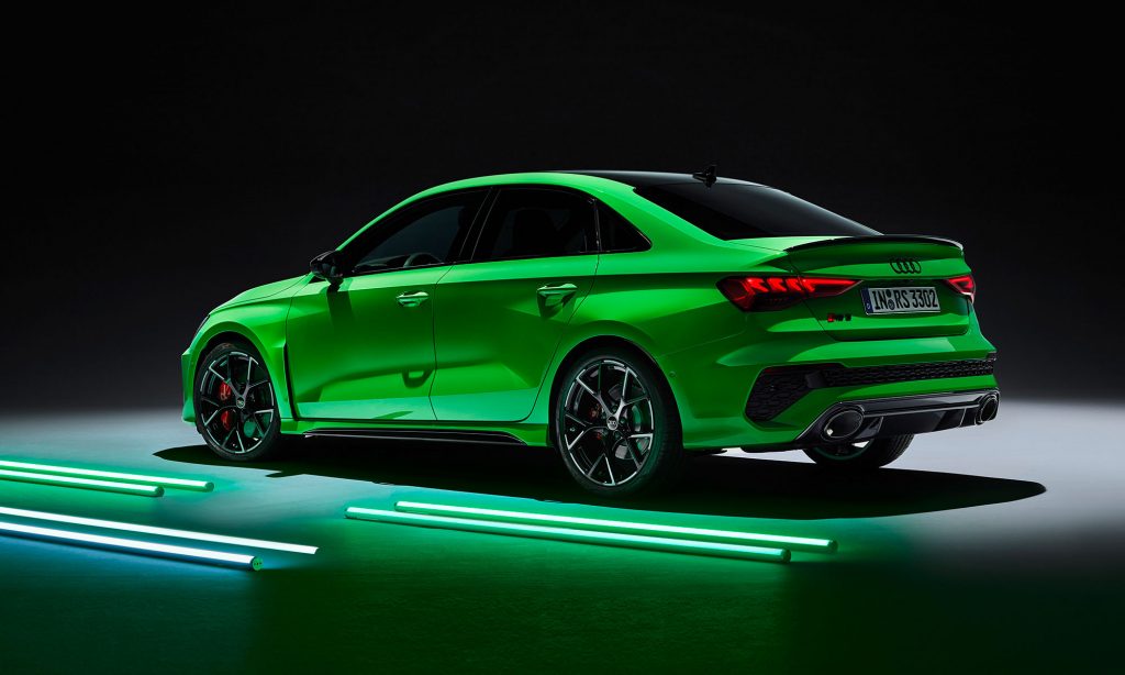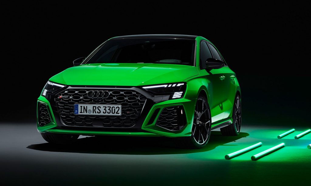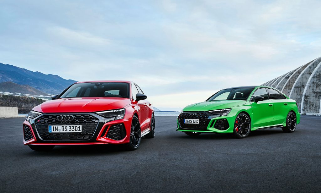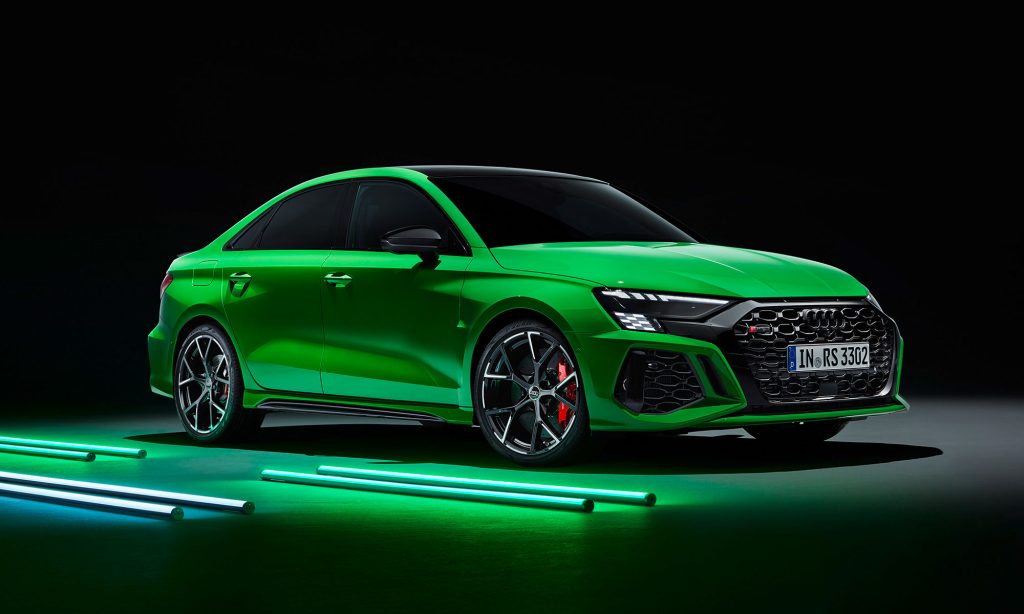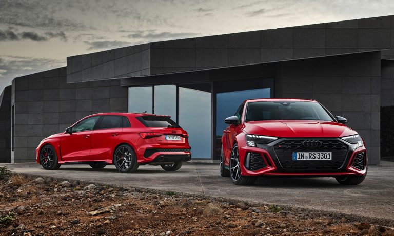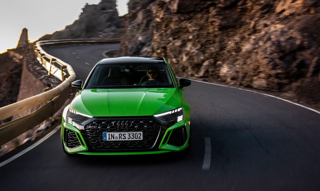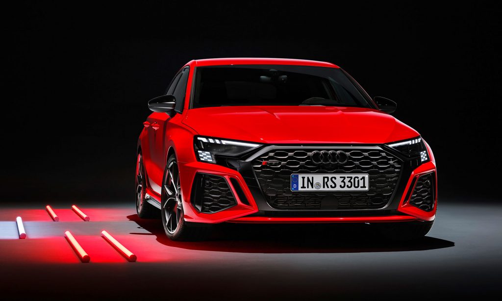 Az új generációs A3 megjelenése után számíthattunk a legsportosabb RS3 változatra, ami ezúttal is ötajtós és lépcsőshátú karosszériával mutatkozott be. A legjobb az egészben az, hogy az Audi megtartotta az elődjéből az öthengeres motorját, nem kellett kisebb köbcentis, elektromos rásegítésű motorra váltania, amiért máris imádjuk.