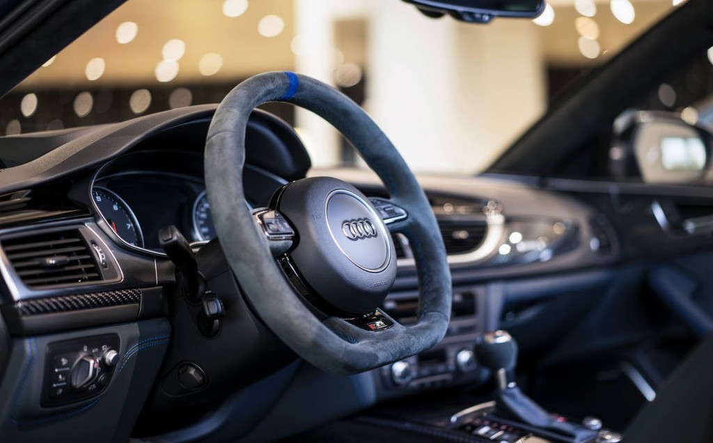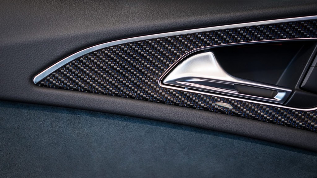 V8-as, 560 lóerős, 700 Nm-es, polárkék metál színben, Audi Sport titánkipufogóval, Alcantara- és karbonborítással, Valcona bőrrel. Szinte ordít, hogy engedjék már ki az aszfaltra, reméljük, hamar lesz gazdája, aki megteszi.