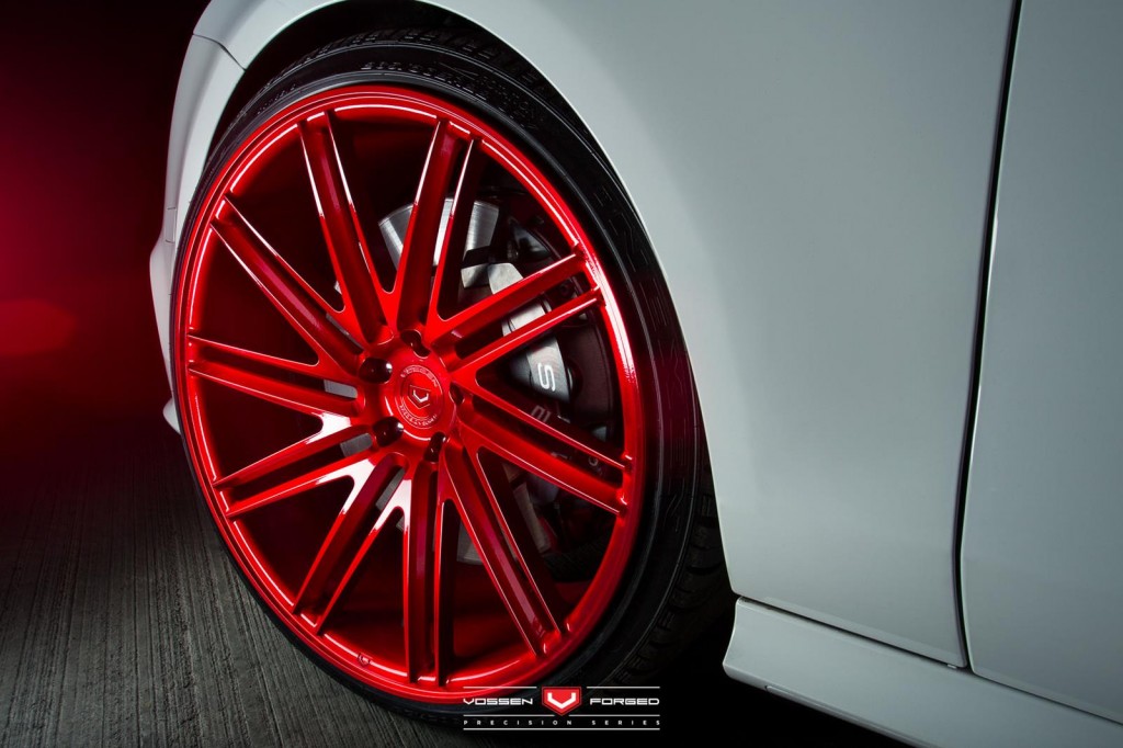 Az S63 AMG Mercinek jól állt a fekete Vossen felni, de ott a szürke kocsin messze nem volt annyira kontrasztos, mint a fehér S7-esen a gigantikus, ráadásul piros kerekek. Hogy tetszik?