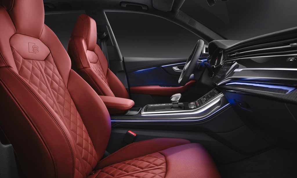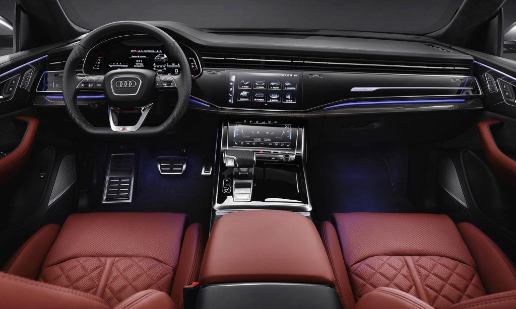 A külseje nem sokban különbözik a Q8-tól, a hatalmas hűtőmaszk matt ezüstszínű keretet kapott, és a függőleges rácsokat megduplázták rajta. Az SQ8-ra szériában 21 colos kerekek kerülnek, de akár 22 colosak is rendelhetők, az utastérben sportkormány és sportülések jelentik a különbséget.