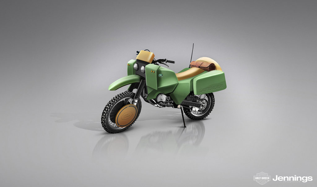 Az 1948-ban bemutatott Land Rover számít a polgári terepjárók ősének, ezért mi más adhatta volna az inspirációt egy krosszmotor tervezéséhez, mint a legelső Defender? A kétkerekű éppen olyan zöld színben pompázik, mint az első Land Roverek, és nincs kétségünk felőle, hogy egy ilyen retró motor óriási siker lenne.